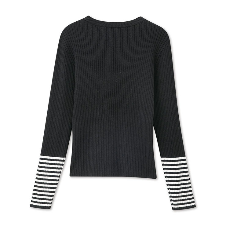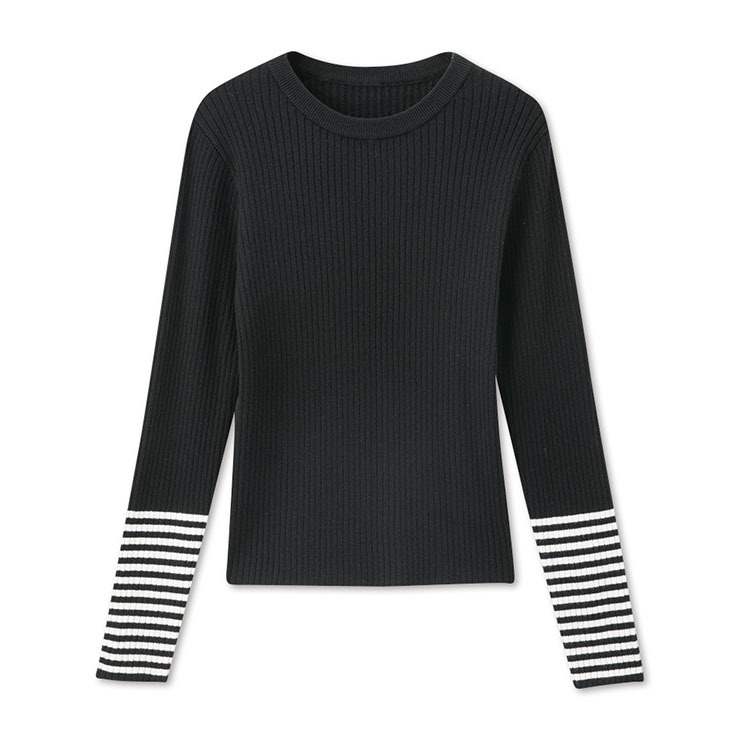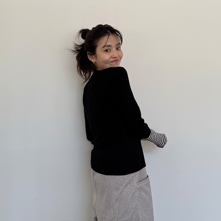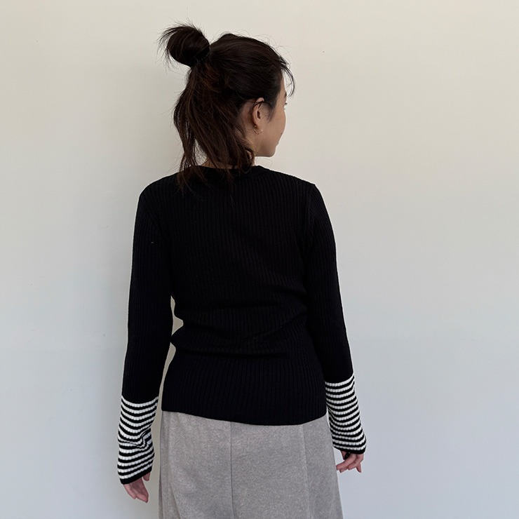 袖のボーダー切り替えがポイントのリブニットプルオーバー。