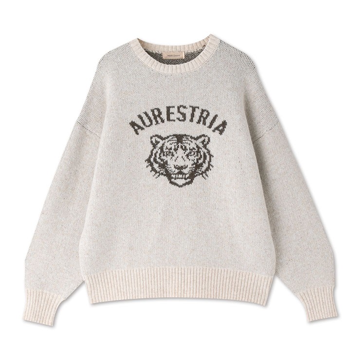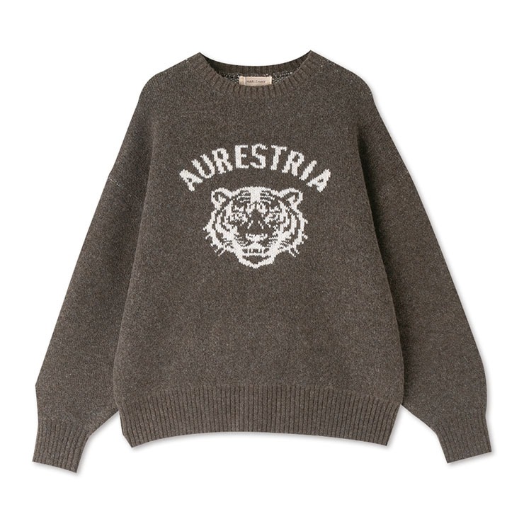 存在感たっぷりのトラモチーフをジャガードで表現したニットプルオーバー。