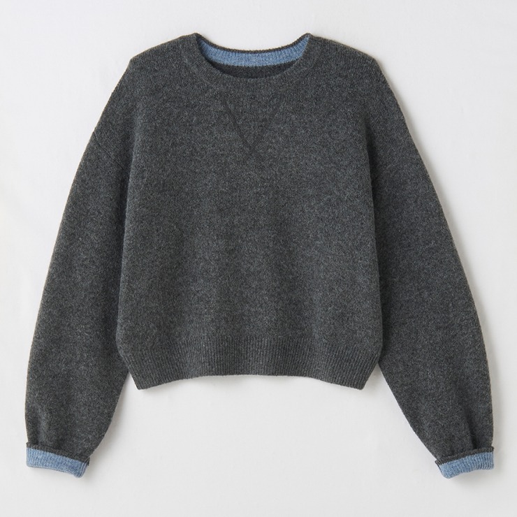 首元と袖口の内側に配色を効かせており、くるっと折り返せばスタイリングにひと味プラス。