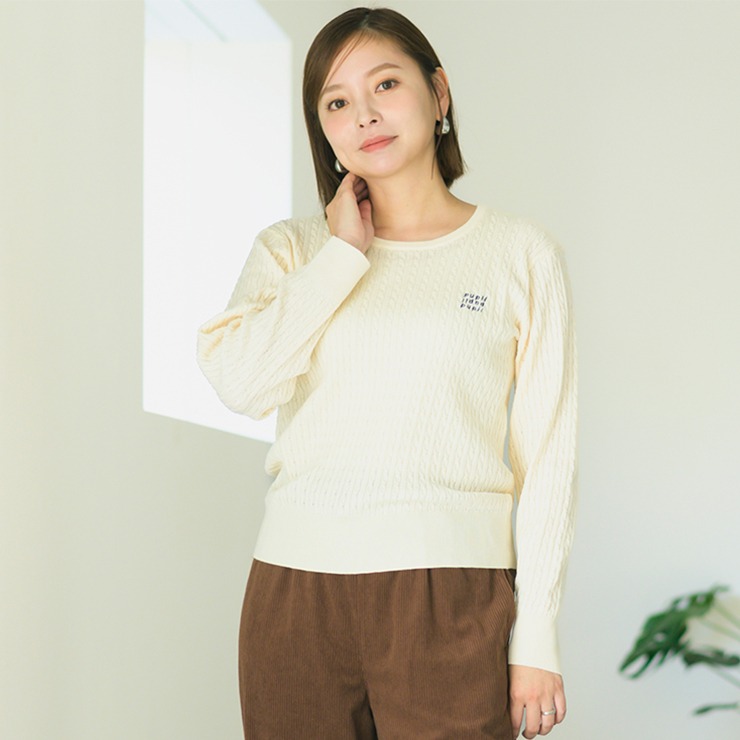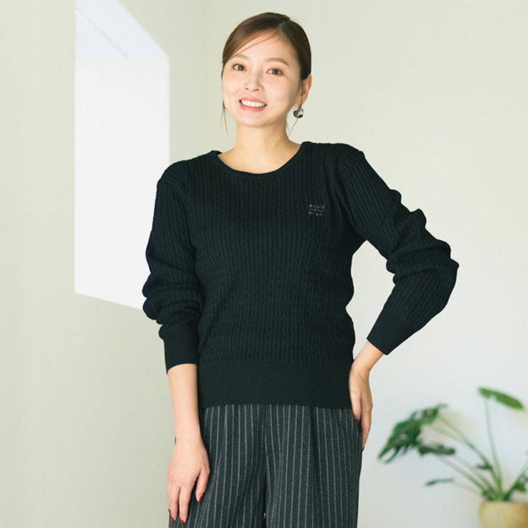 トレンドの細めのケーブルがおしゃれな1枚です。