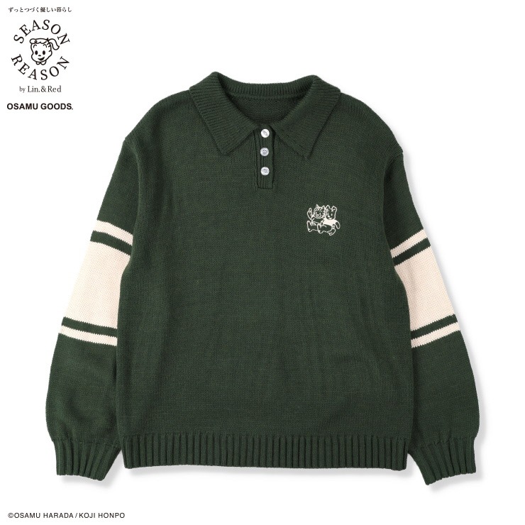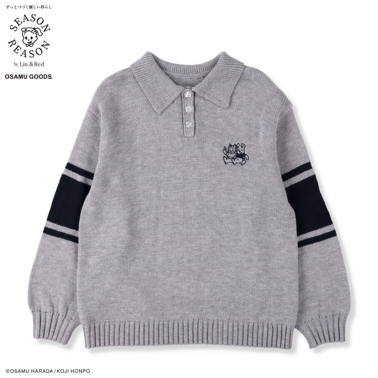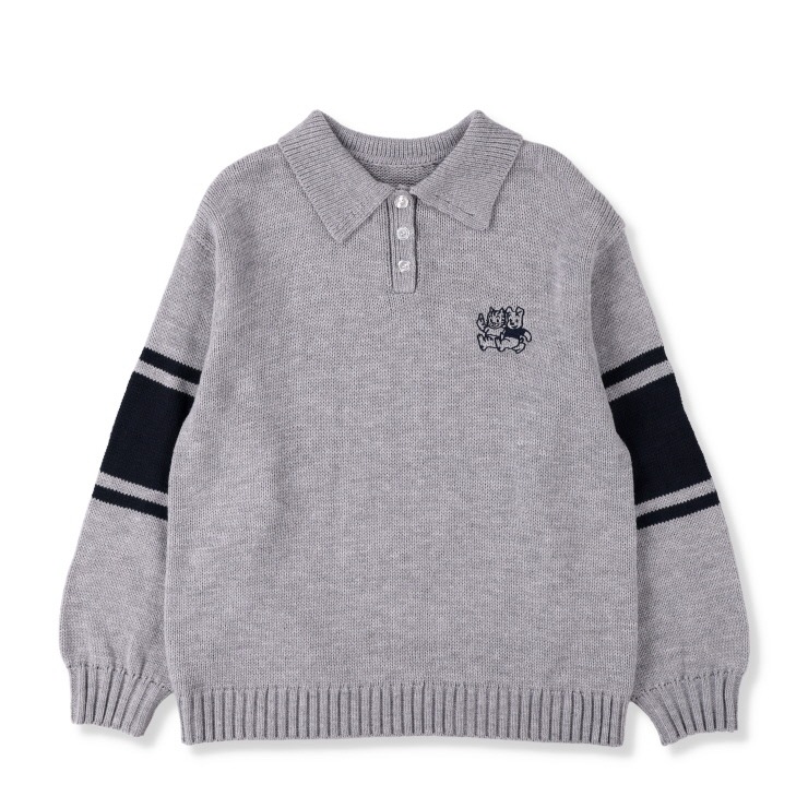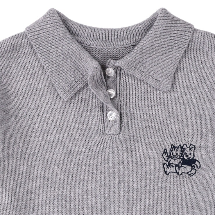 襟付きニットにさり気なくキャラクターが刺繍されたアイテムです。