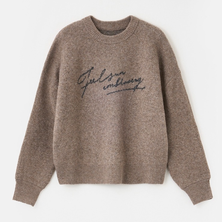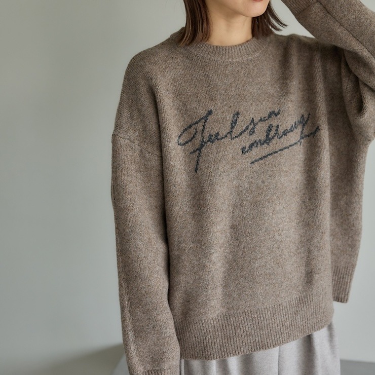 どんなボトムにも合わせやすい使いまわしができるロゴニットです。