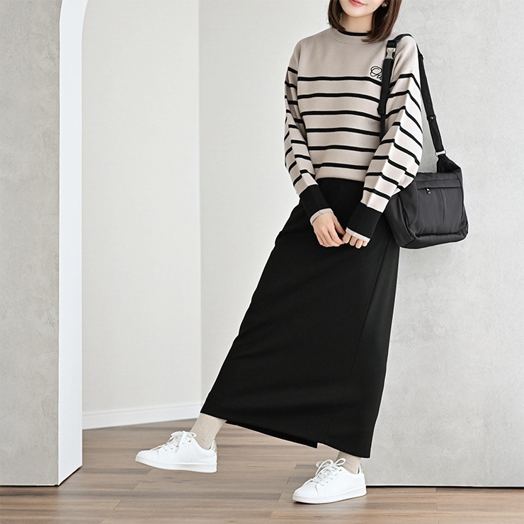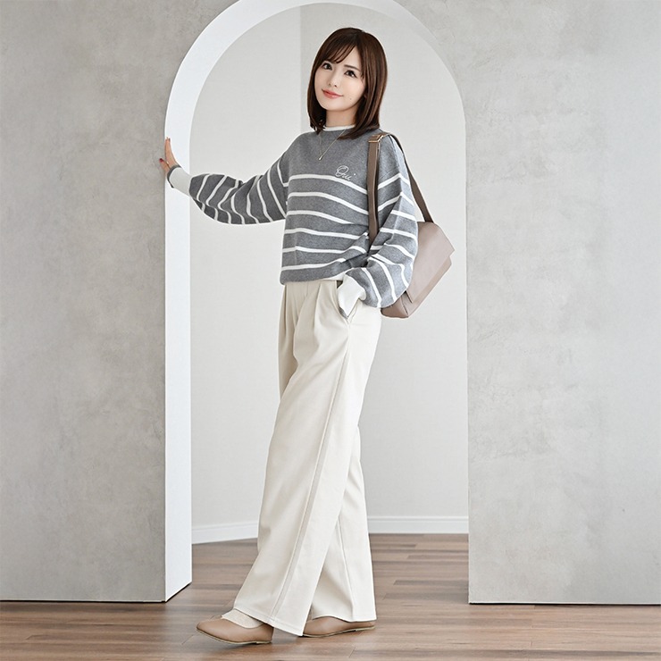 ジャガード編みのボーダーなのでスウェットのようなしっかり感とカジュアル感もありつつ、