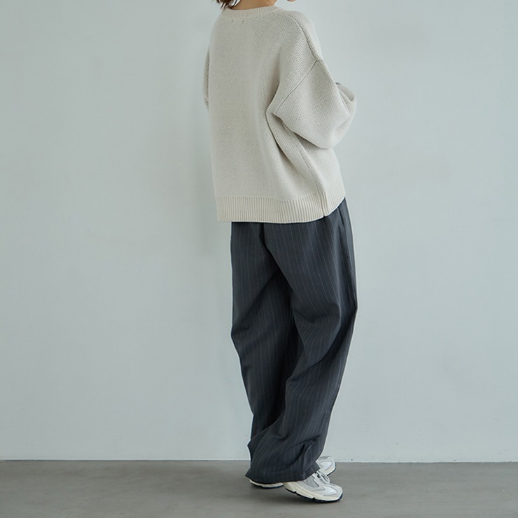 ふっくらとしたボリューム感と軽くて肌アタリが優しい素材感のニットです。