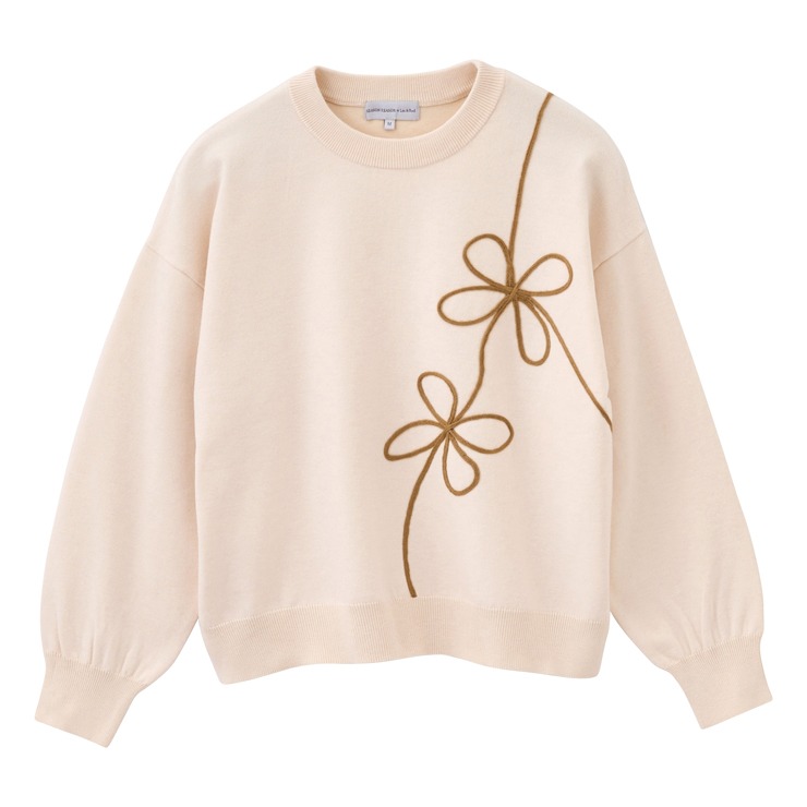 ふんわりとした素材でコード刺しゅうであしらわれた花柄が特徴の着回しやすい1枚です。