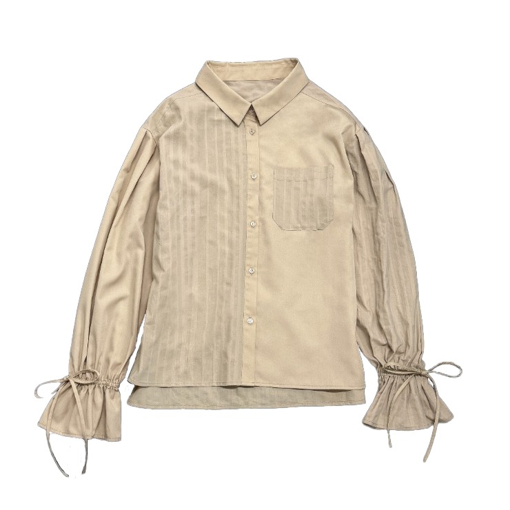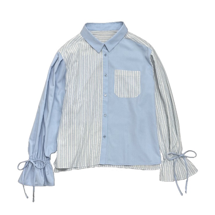 異なる素材を組み合わせた切り替えデザインが目を惹く、オーバーサイズシャツ。