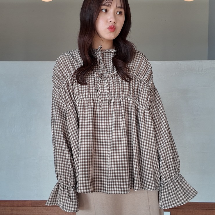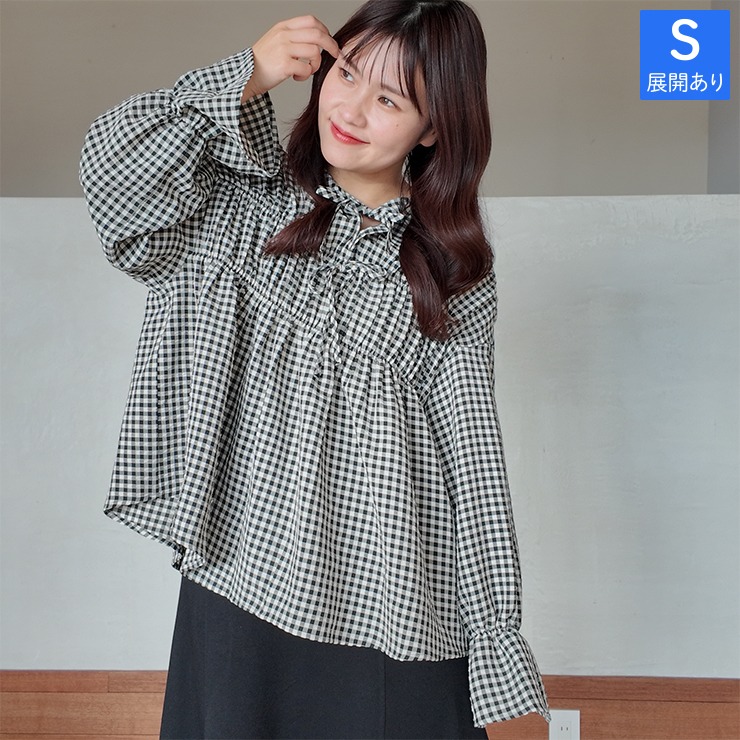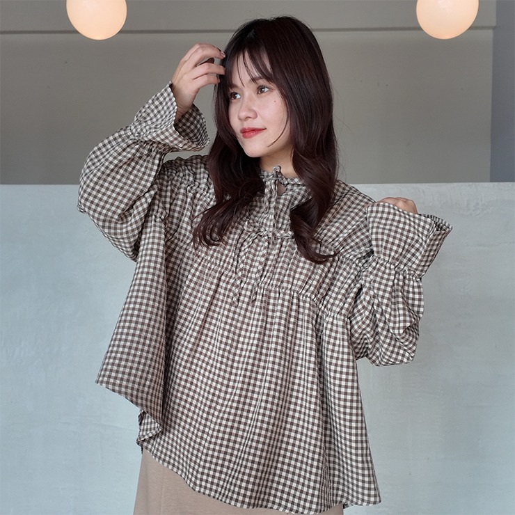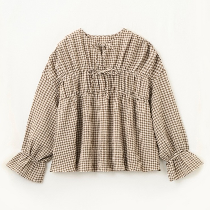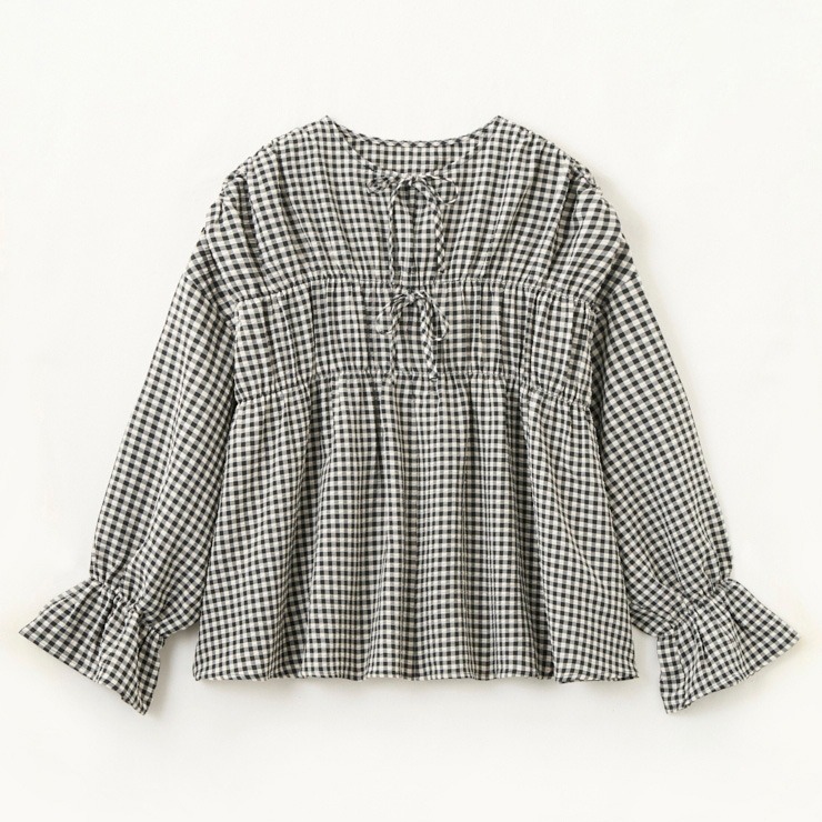 フレア袖と胸元リボンがポイントで、デニムやカーゴとも好相性です。
