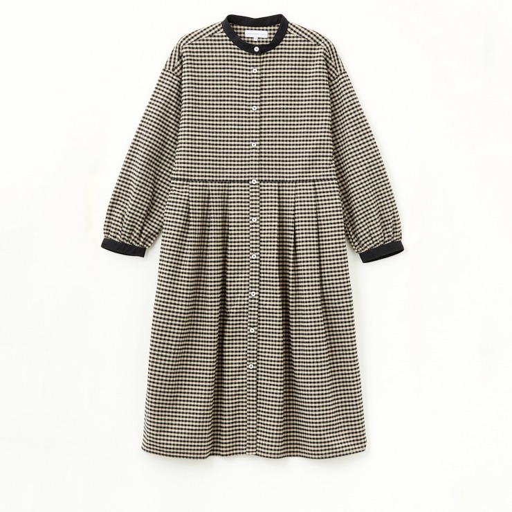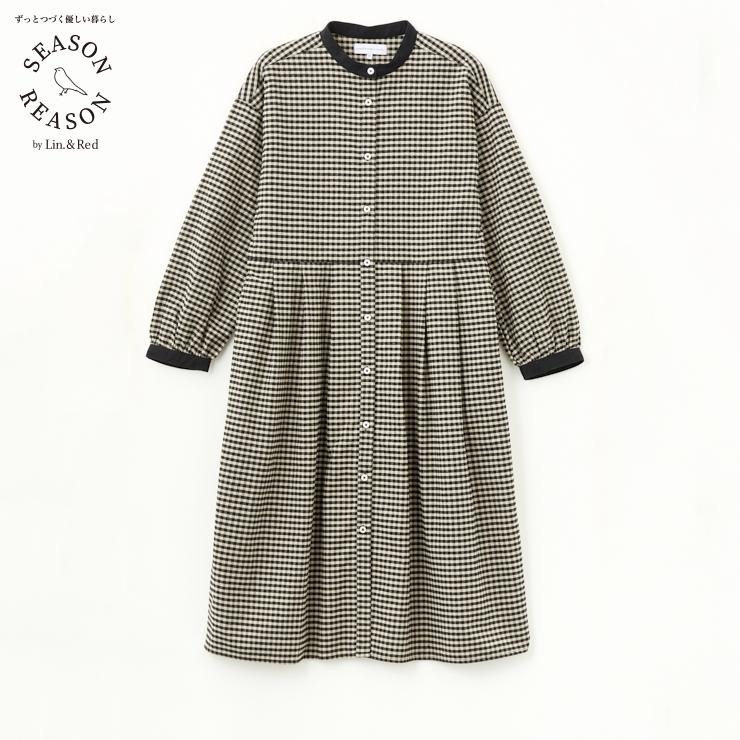 暖かみのある起毛素材のワンピースは秋色のギンガムチェックがポイント。