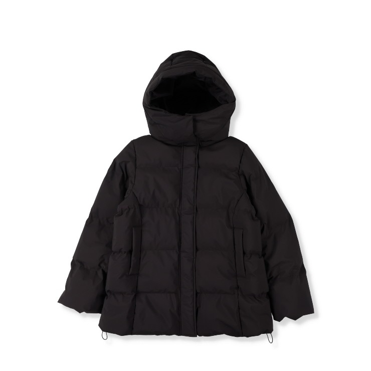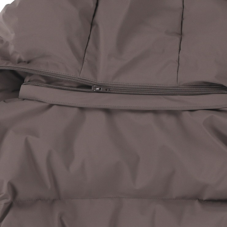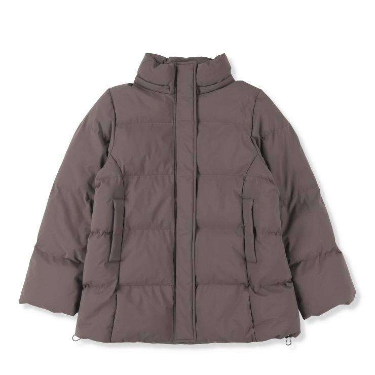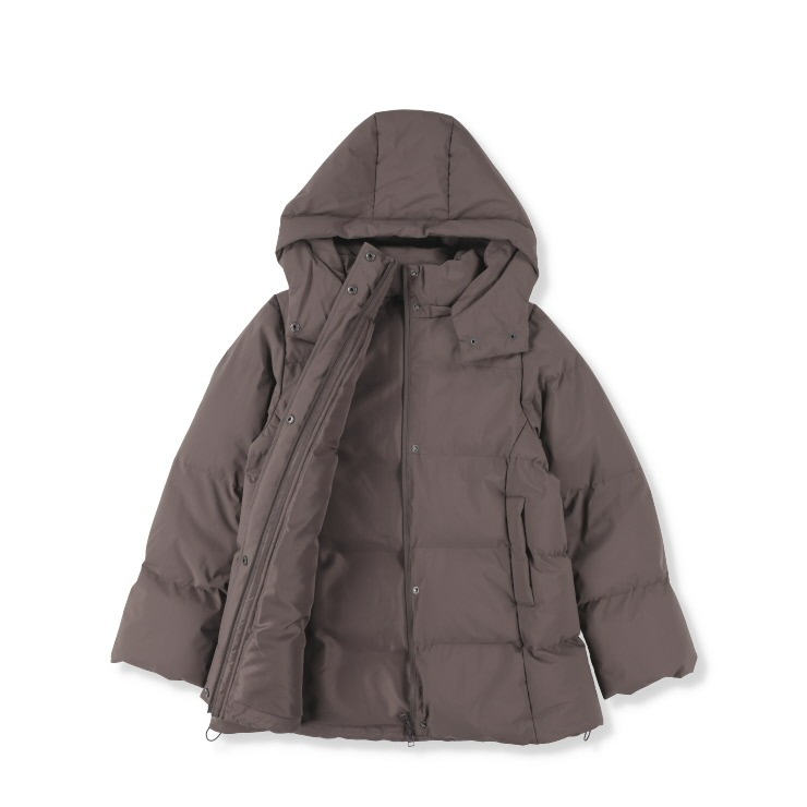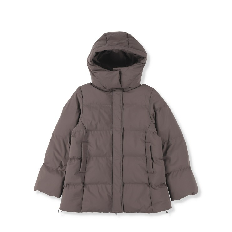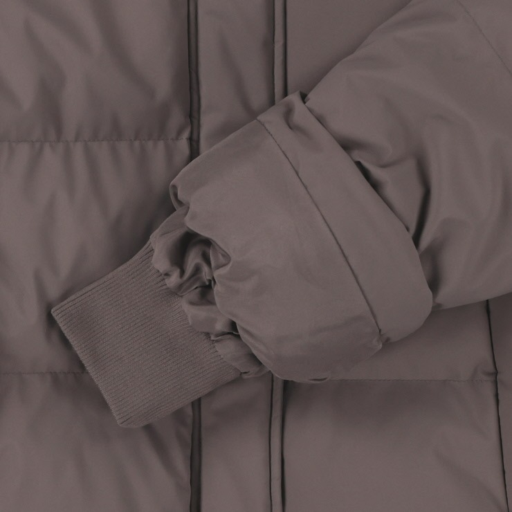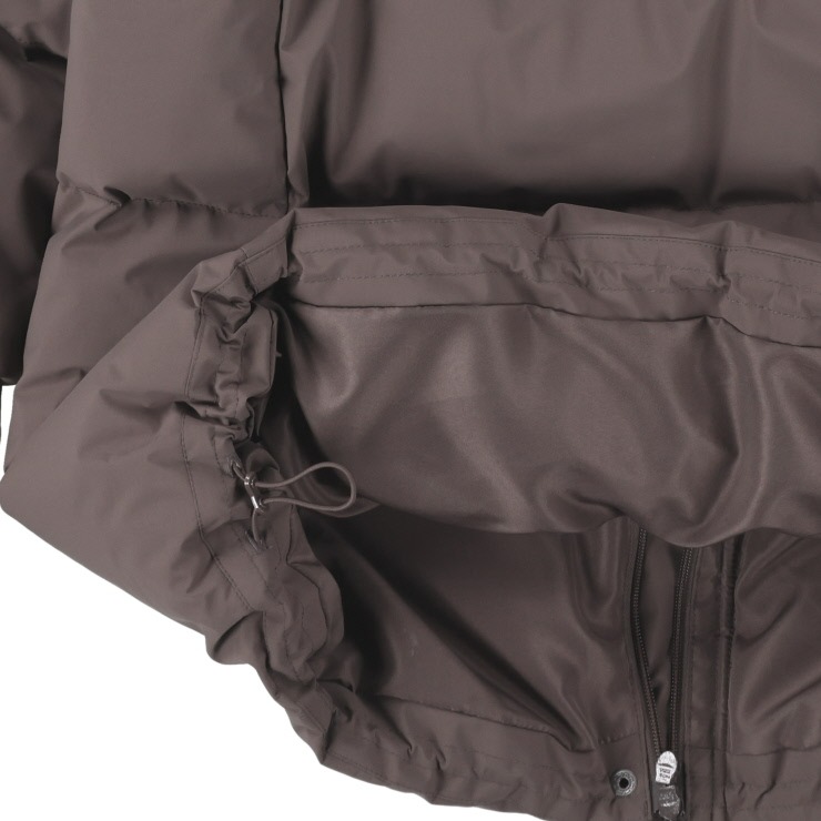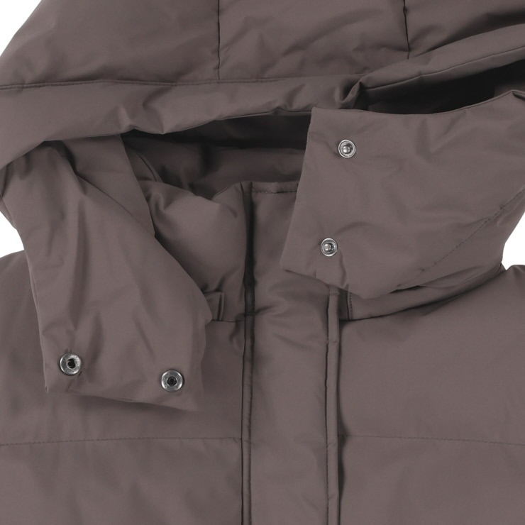 パウダータッチの素材を使用した、中綿ジャケットです。ロング丈でお尻まですっぽりと、袖口に見えないRIBをつけて 防寒用おしゃれアウターに仕上がりました。腕周りから肩周りのスッキリ見えのシルエットにこだわりました。フードは脱着できるので さらに着こなしの幅、シーズン長く来ていただけます。
