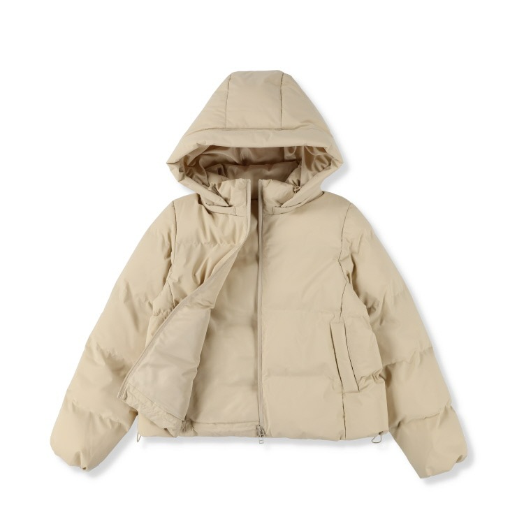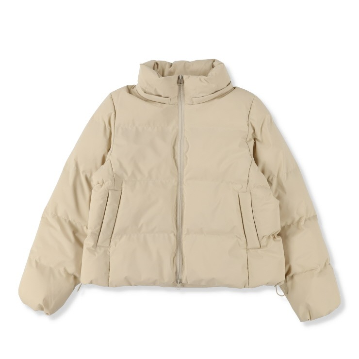 パウダータッチの素材を使用した、中綿ジャケットです。