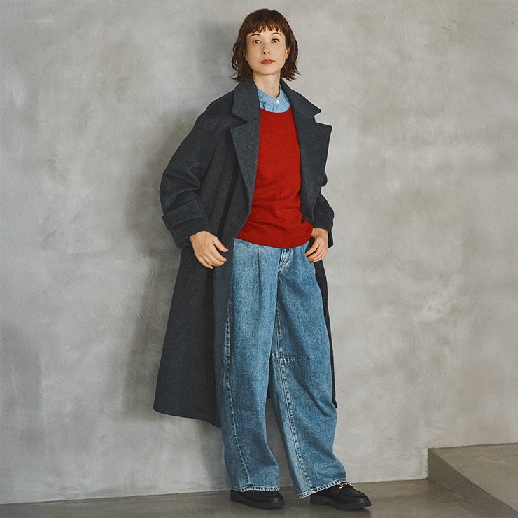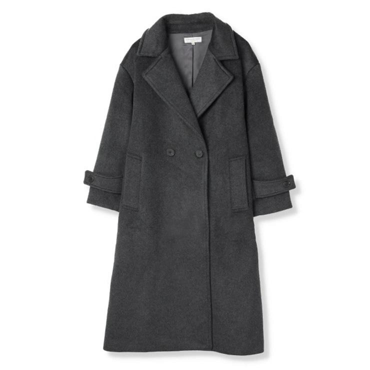 柔らかくなめらかな肌触りのカシミア10%の暖かいロングコートです。