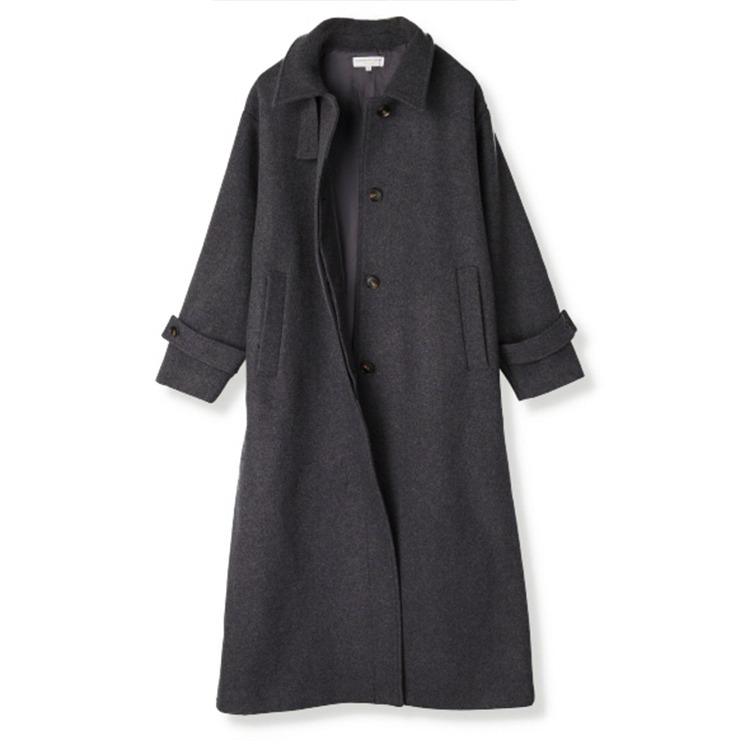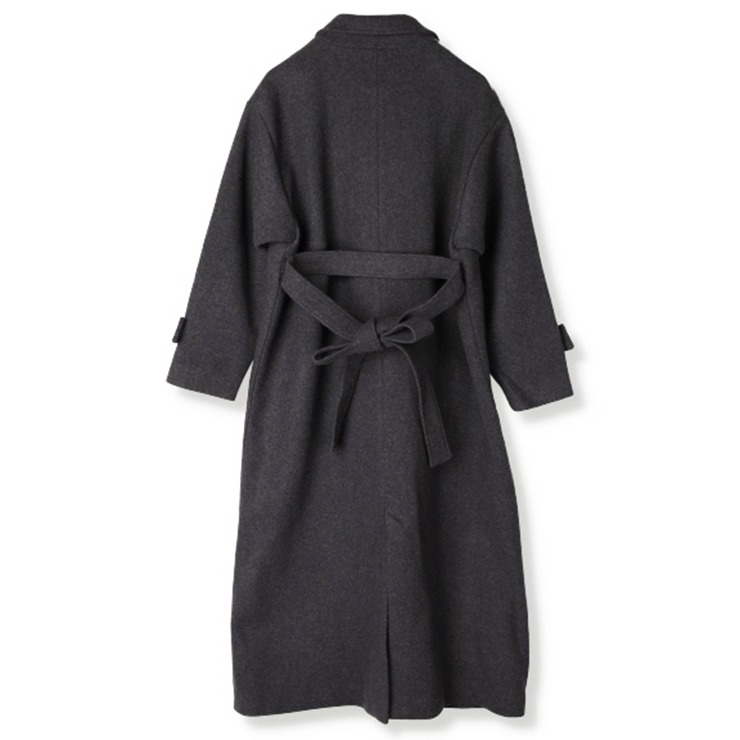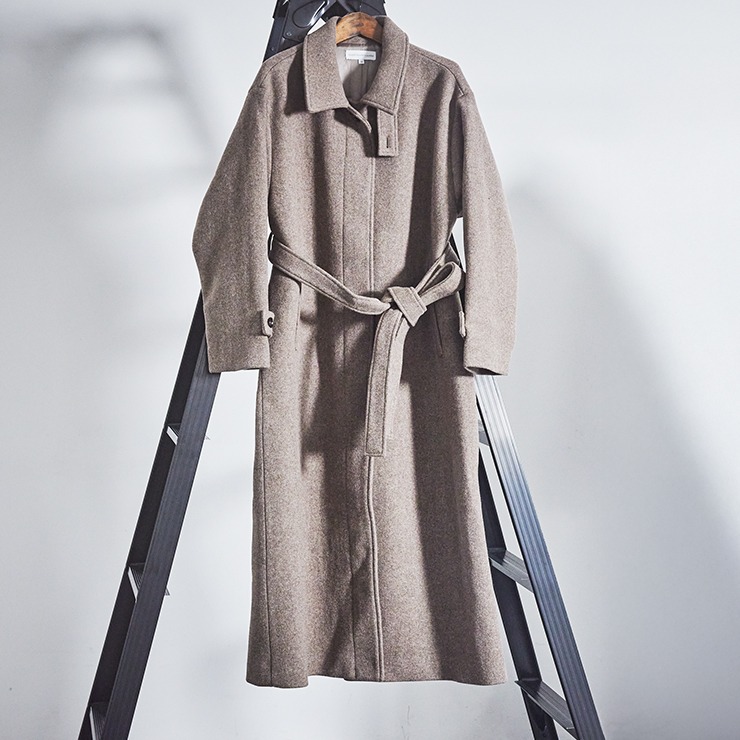 保温性の高いウール80%の温かいベルト付きロングコートです。