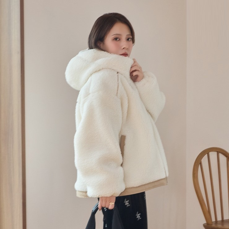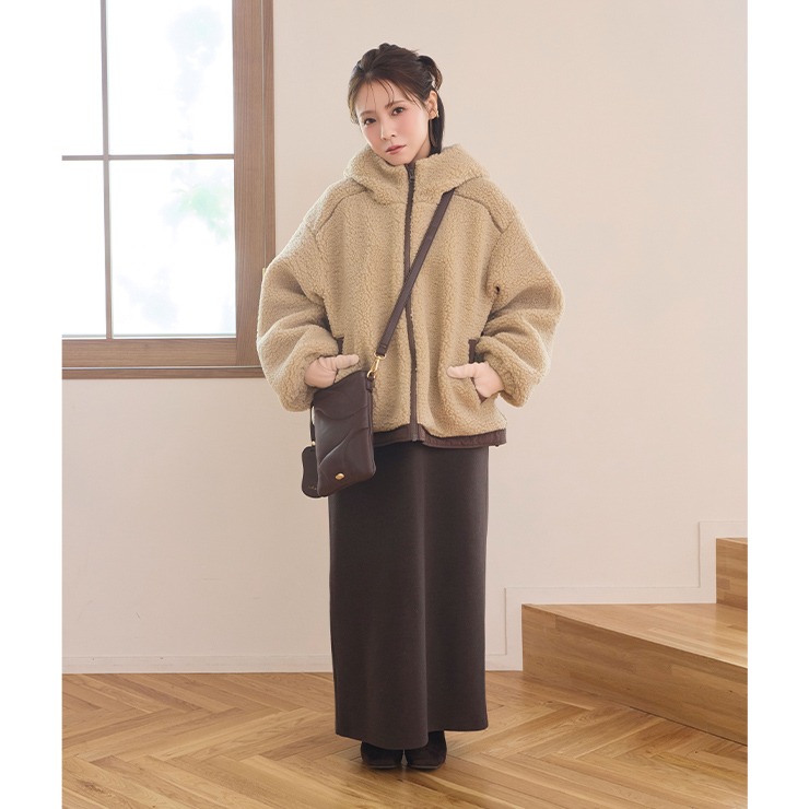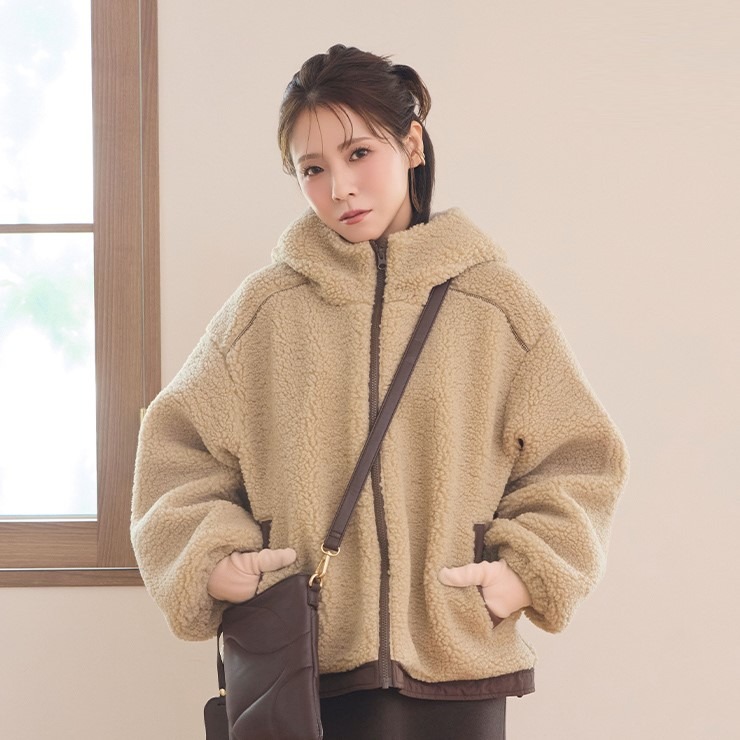 小粒のボアが上品さを引き立てる、大人にうれしいカジュアルブルゾン。