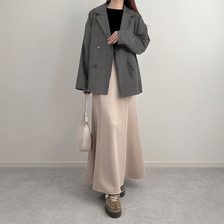 ヴィンテージなカラー感が可愛いテーラードジャケットです。パンツと合わせて大人っぽく、スカートと合わせてフェミニンに、どんなスタイルにも合わせられます。ヒップを覆う丈感で、暖かく体形カバーもかないます。