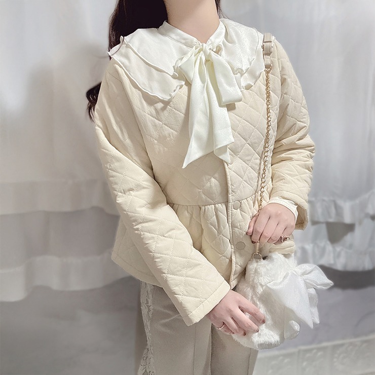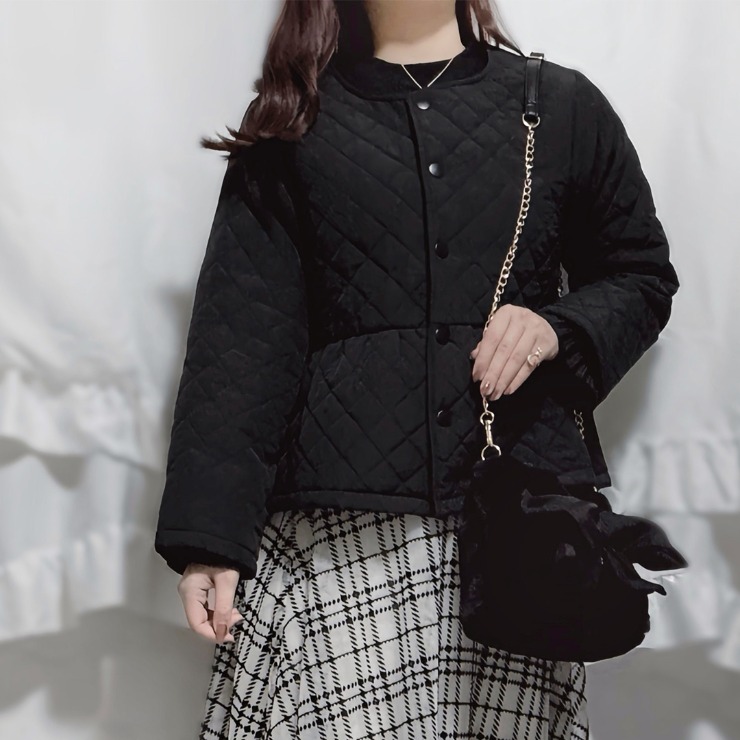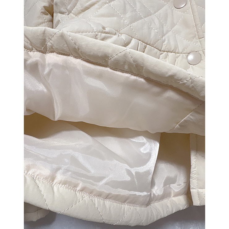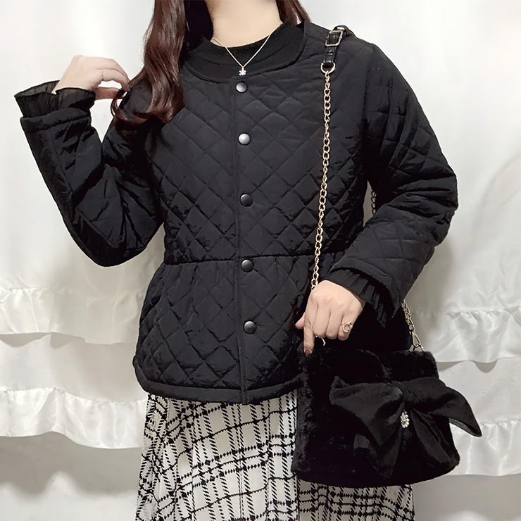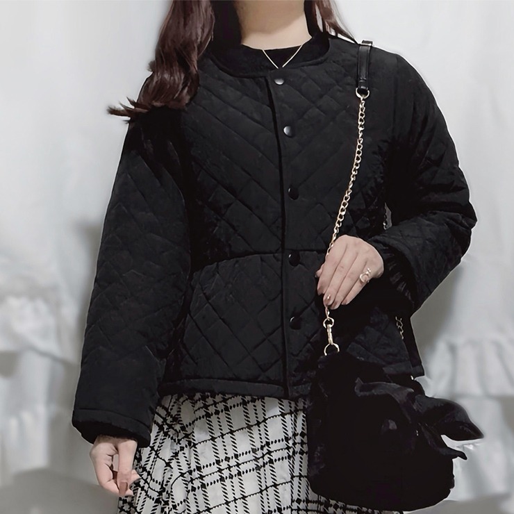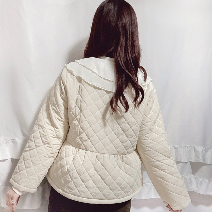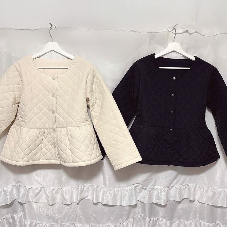 カジュアルなキルティングと大人可愛いペプラムの組み合わせです。切替から広がるペプラムシルエットで、スタイルアップが叶います。