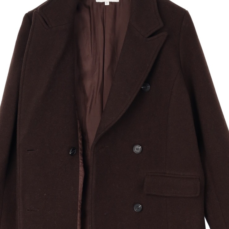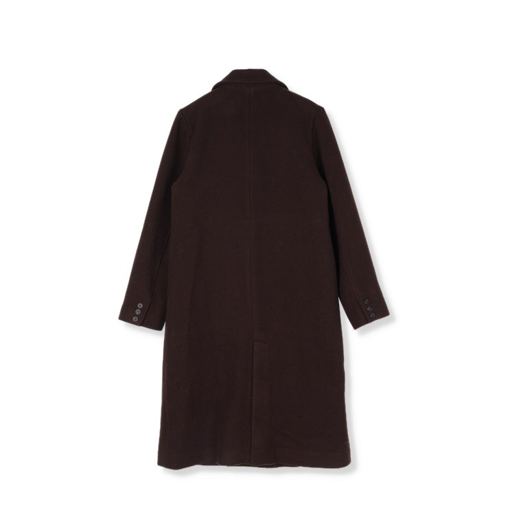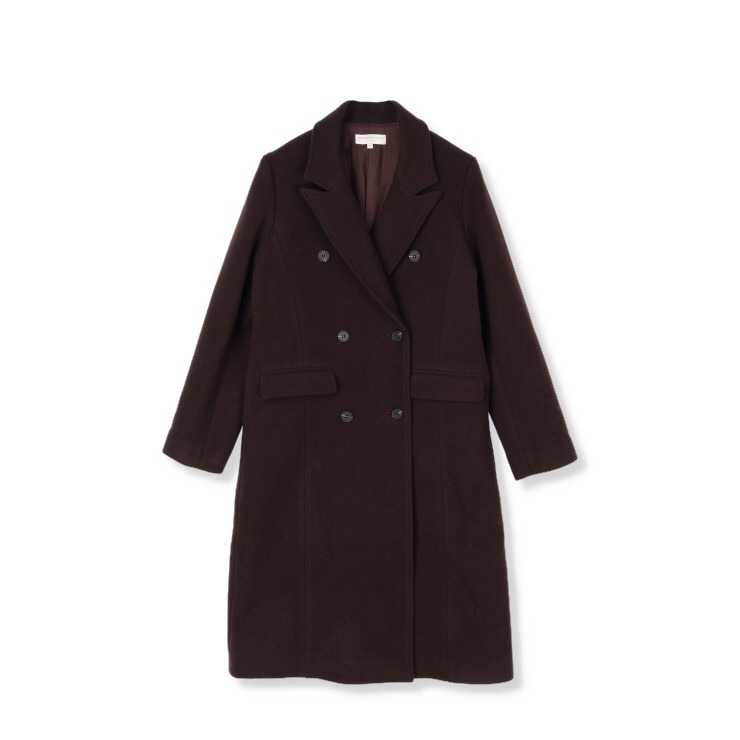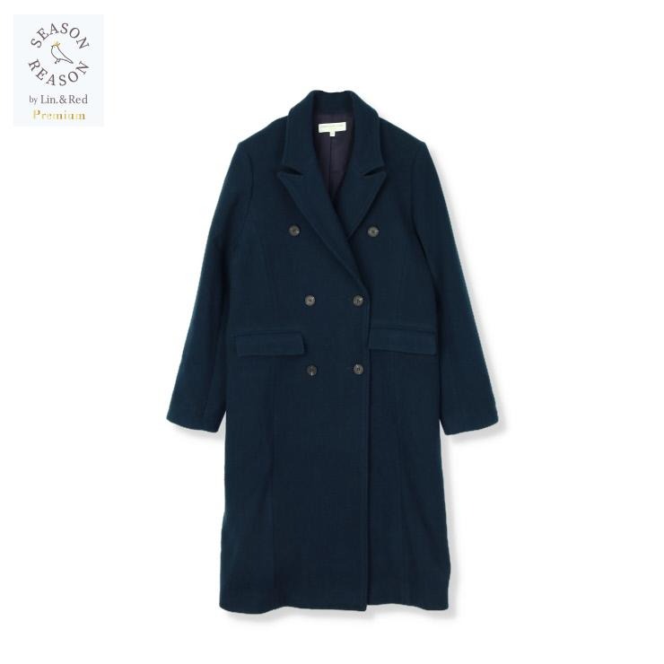 今流行りのピークドラペルコート。後ろ身頃の少し高い位置にあるウエスト切り替えが足長効果になります。ウール82%の暖かいロングコートです。
