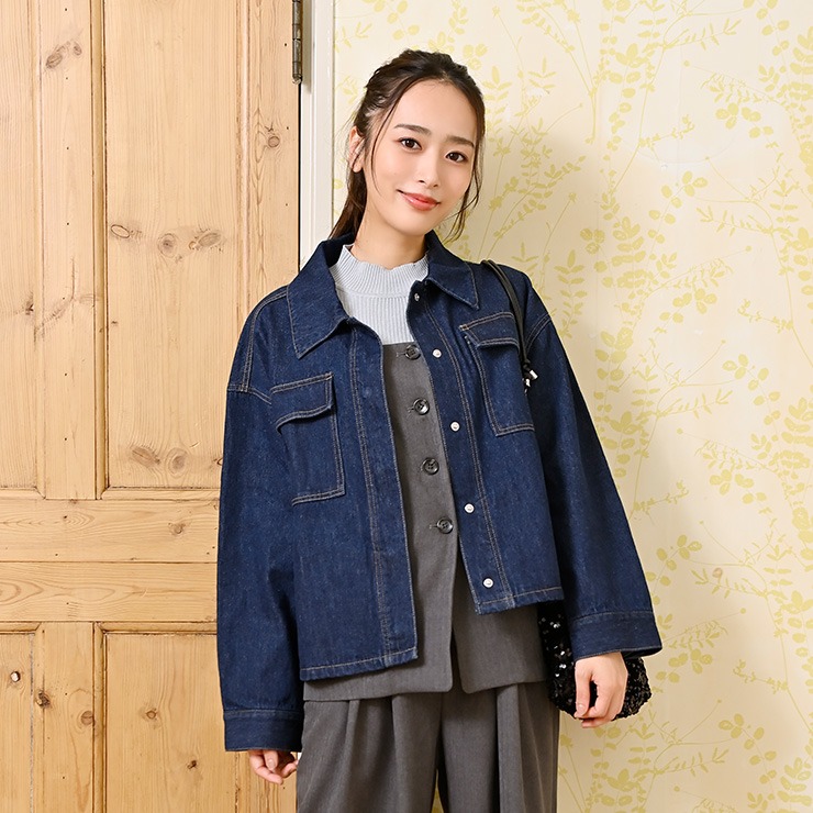 中肉のデニムで、ワークテイストのポケットがデザインされていますが、