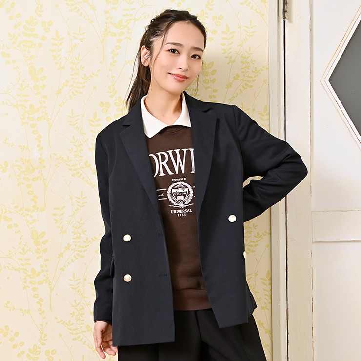 金ボタンがアクセントになり、上品な印象に。