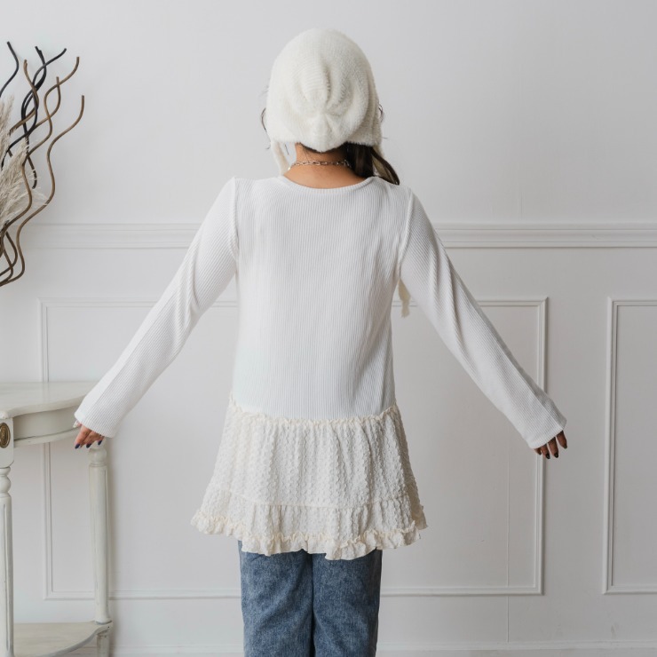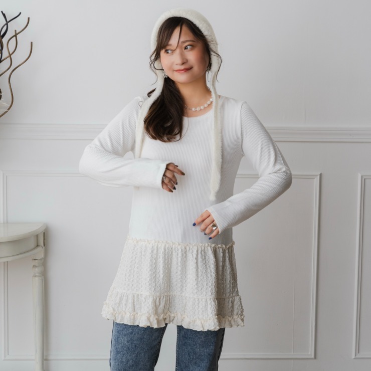 裾にはふわっと異素材レースをドッキング。