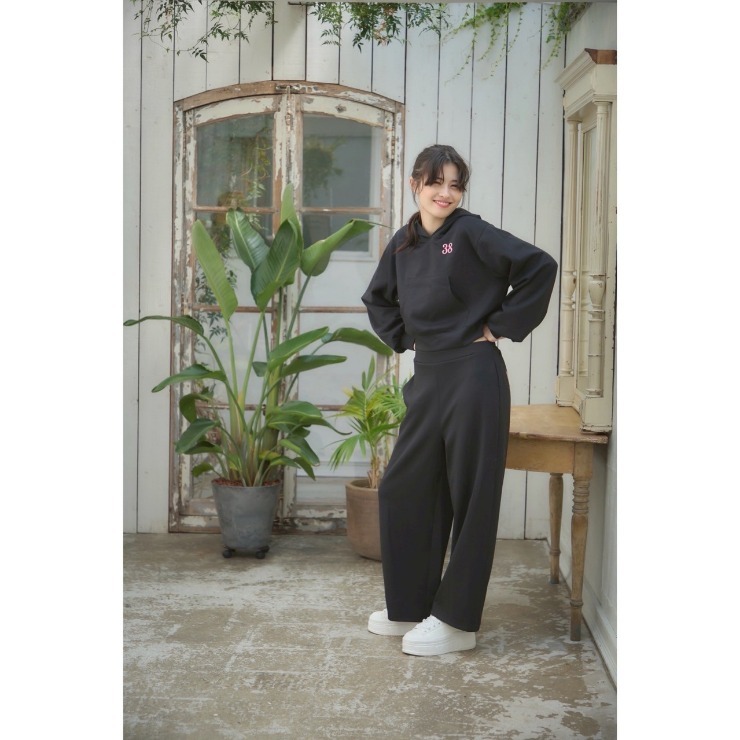 同素材のパンツと合わせたセットアップスタイルもおすすめです。