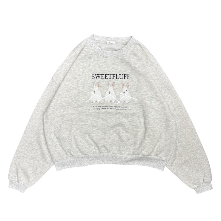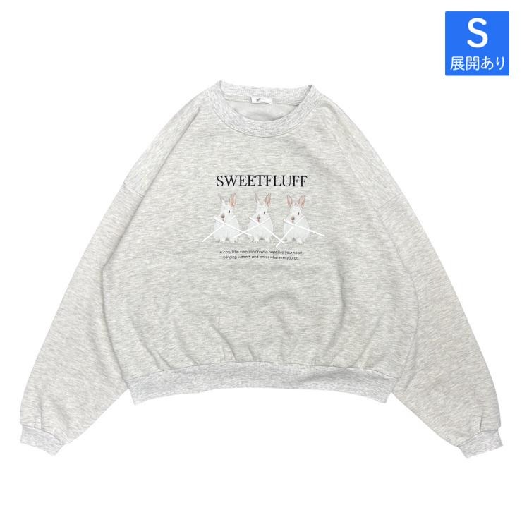 ふわふわうさぎのプリントが可愛い裏起毛スウェット。