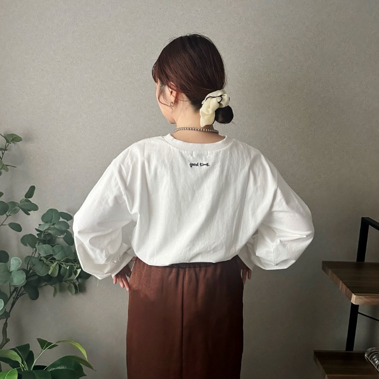 シンプルでコーデに取り入れやすく飽きのこないデザインのロンTです。