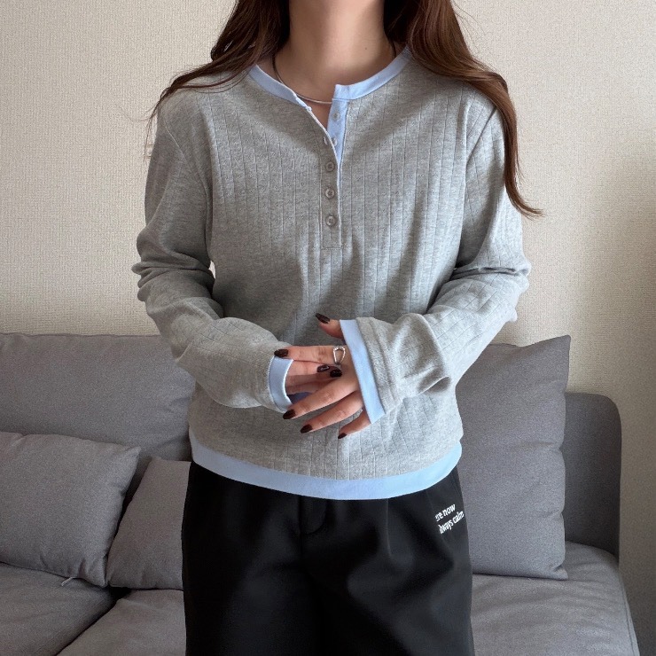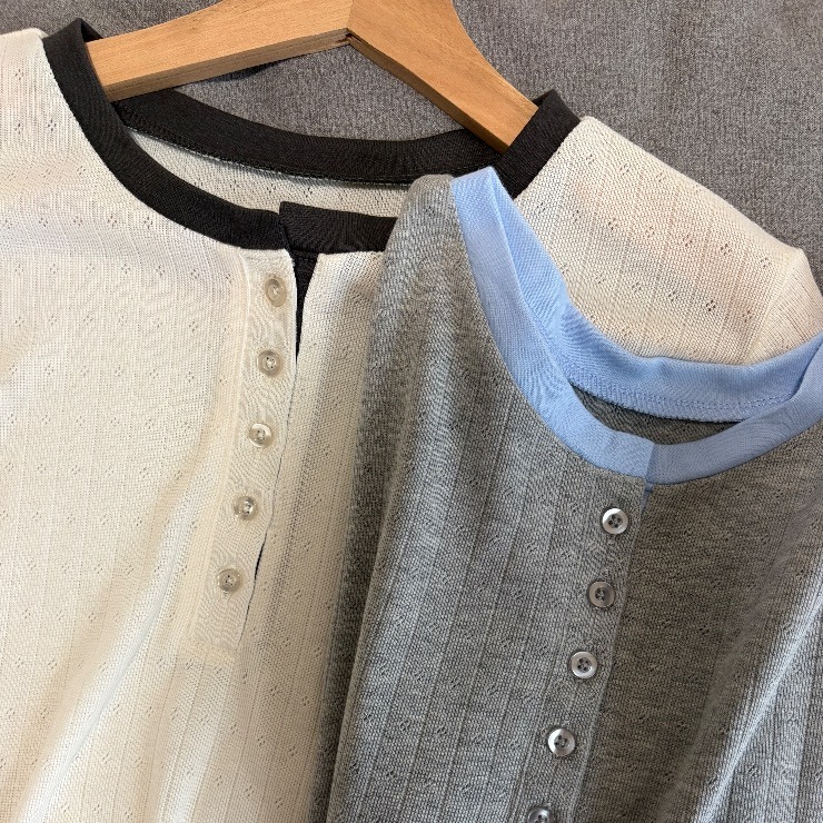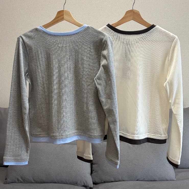 1枚で重ね着をしているようなスタイリングが楽しめるアイテムです。