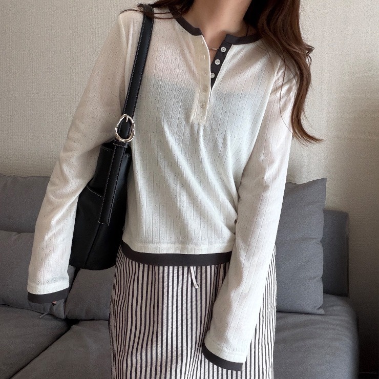 レディース 配色ヘンリーネックプルオーバー(akaru)