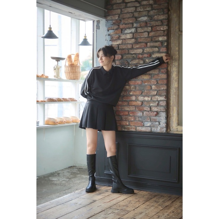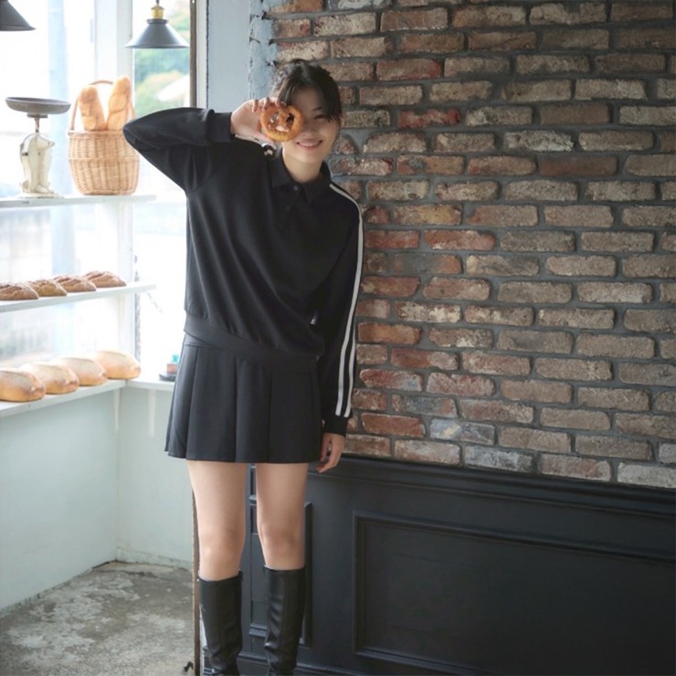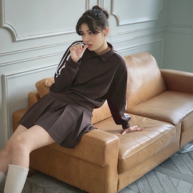 同シリーズの袖ラインプルオーバーと合わせれば、トレンド感満載のセットアップスタイルに。
