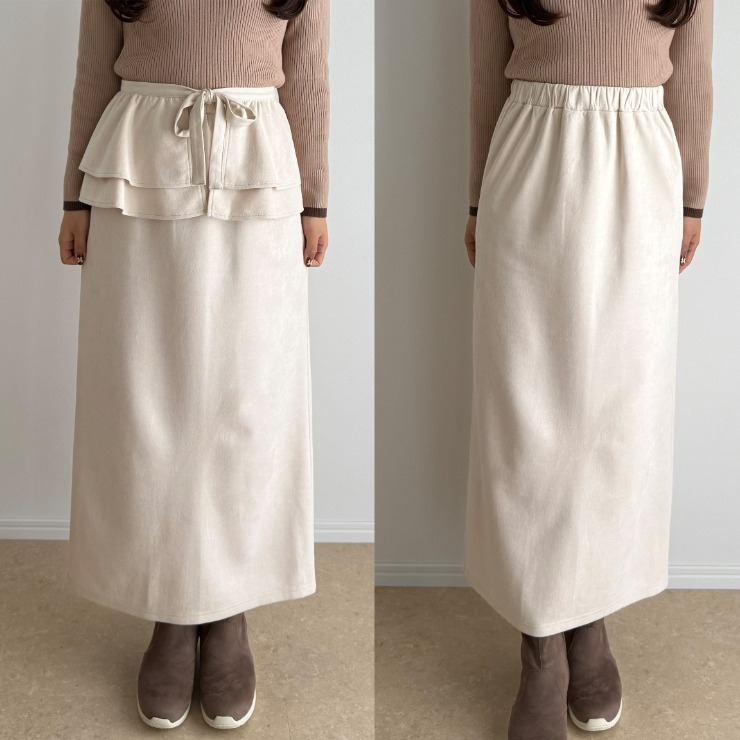 インフルエンサーyunaさんコラボ企画の巻きスカート付きナロースカートになります。巻きスカートは取り外し可能なため、コーディネートの雰囲気に合わせてお選びいただけてオススメです◎