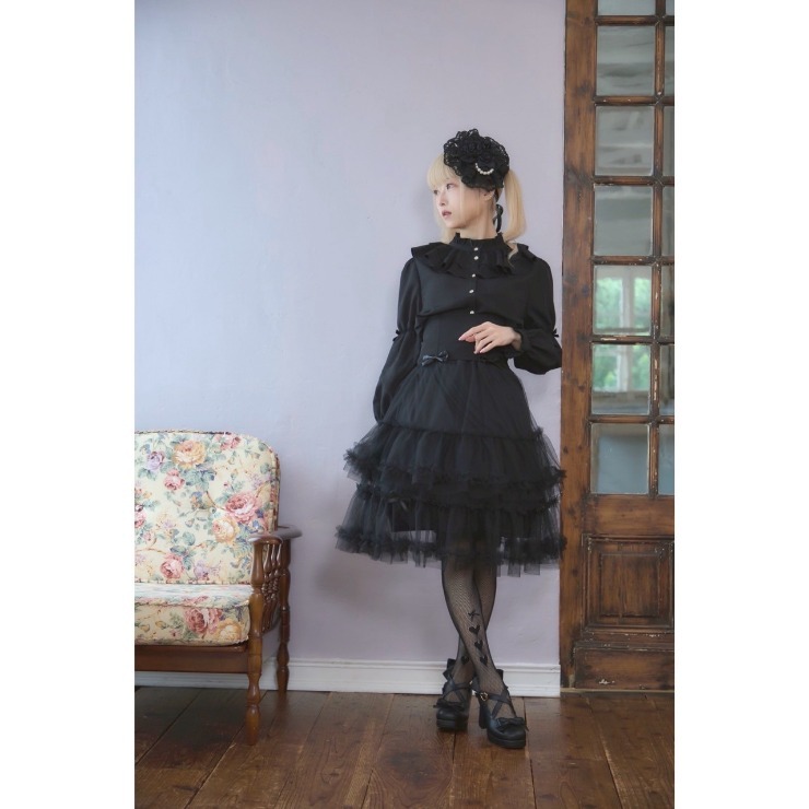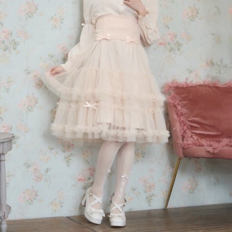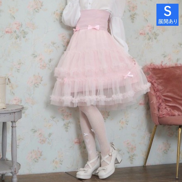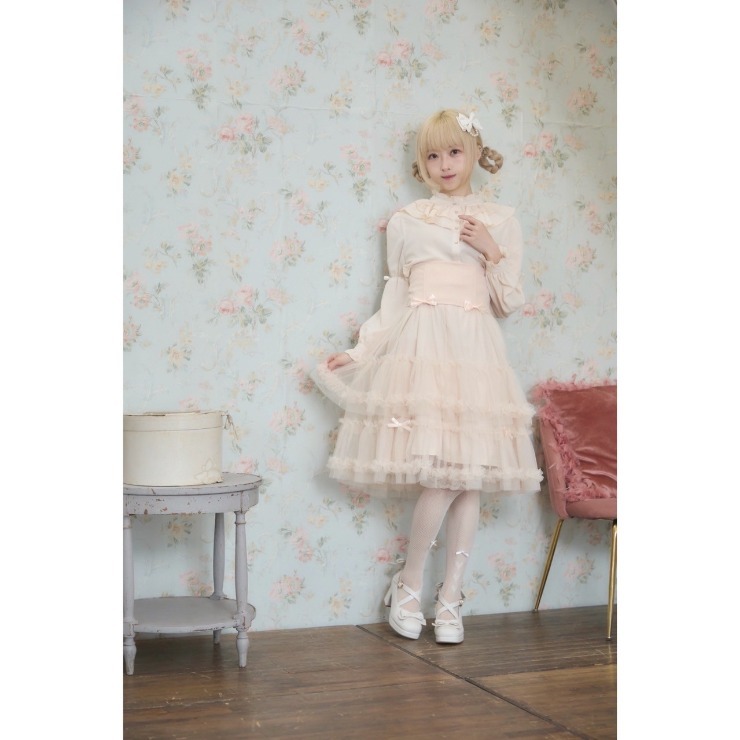 ふんわりと広がるチュールスカートに、リボン付きのコルセットを組み合わせたセットアイテム。