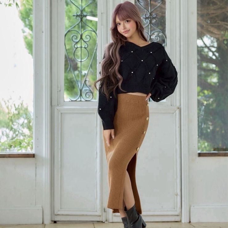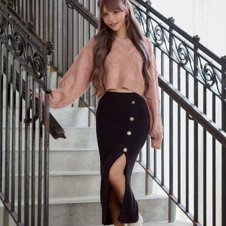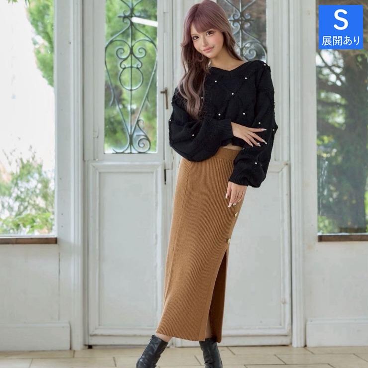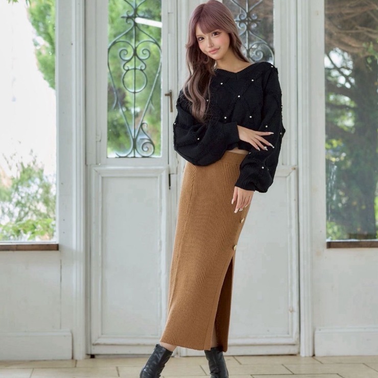 レディース スリット金ボタンナロースカート(今井アンジェリカ)