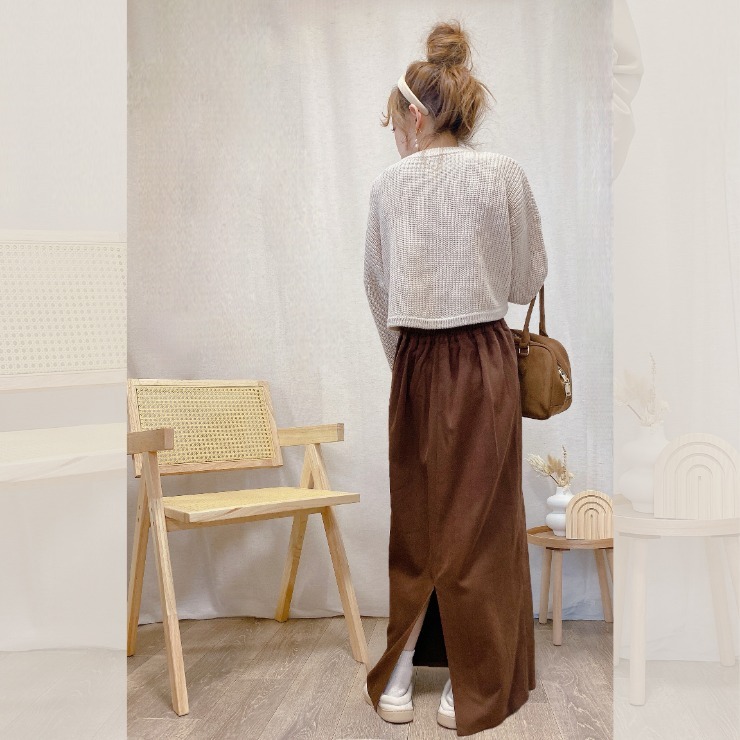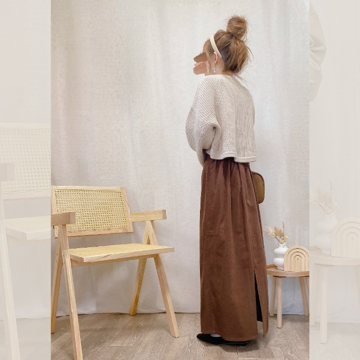 総丈:90.0cm スカート丈:82.0cm ウエスト周り:70.0cm ヒップ:107.0cm サイズガイド - 品番