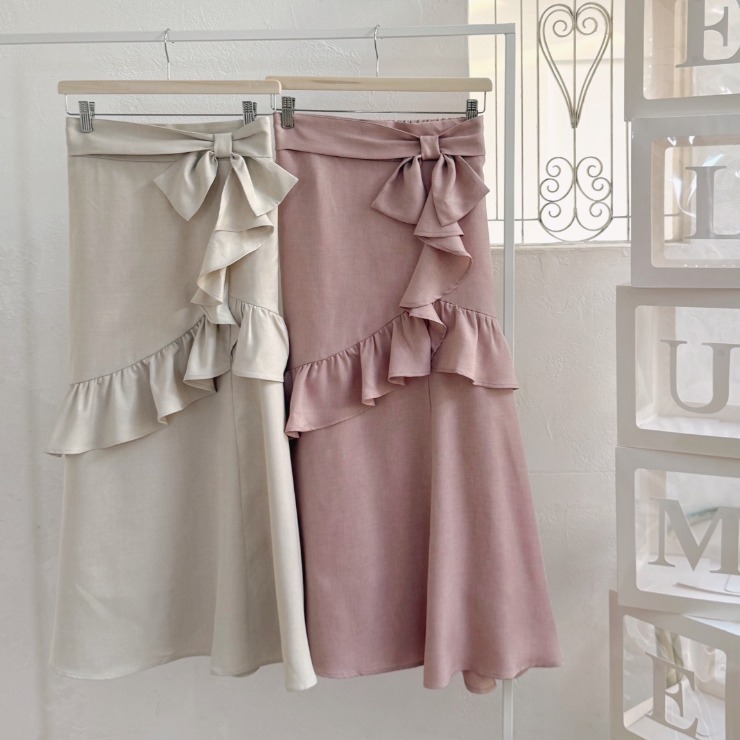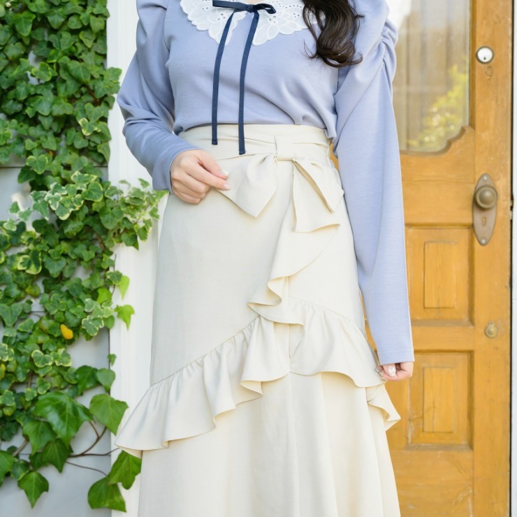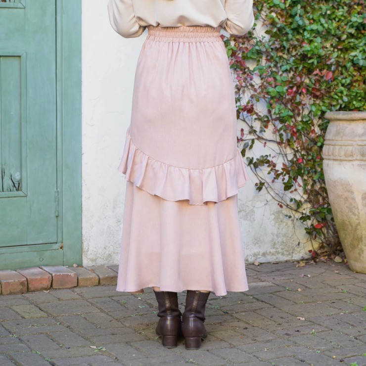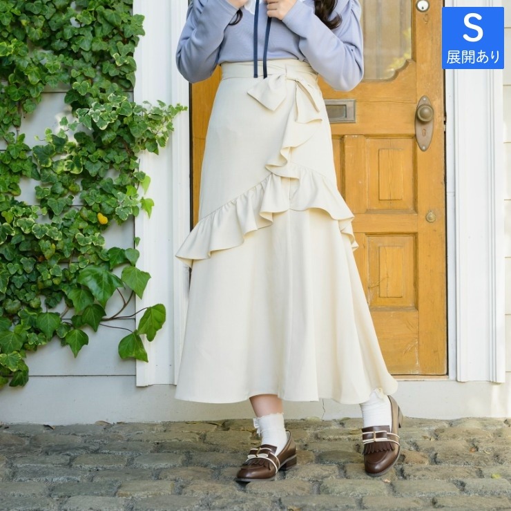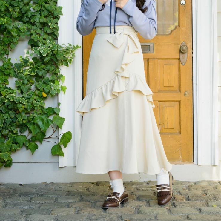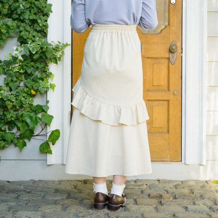 動くたびに揺れるドラマティックなラッフルデザインスカート