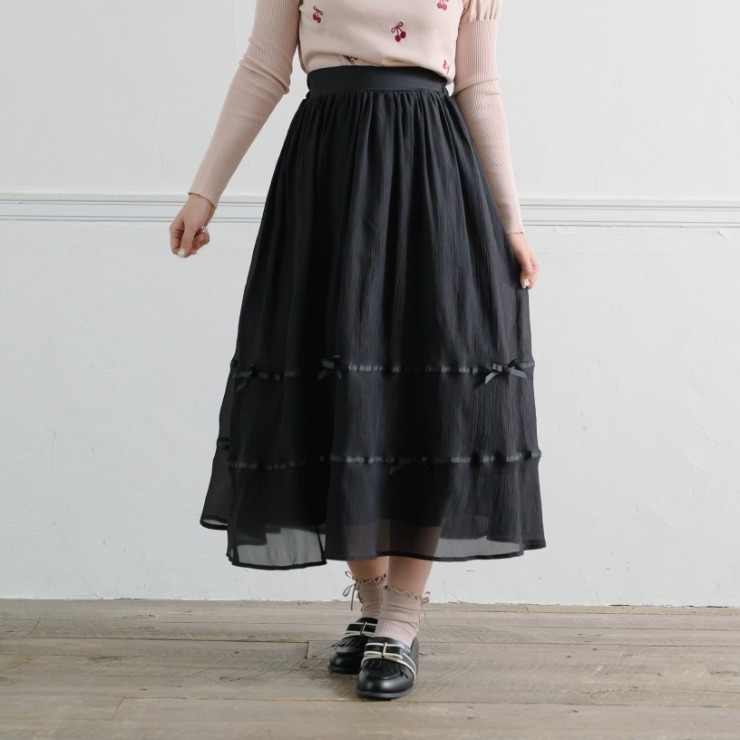 軽やかなシアー素材でふんわりとした透け感がフェミニン要素たっぷりのスカート!