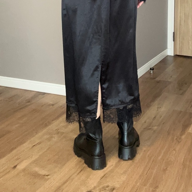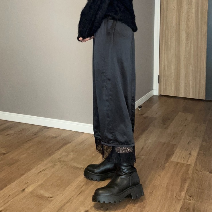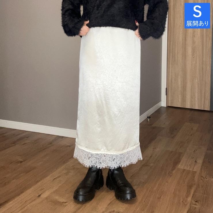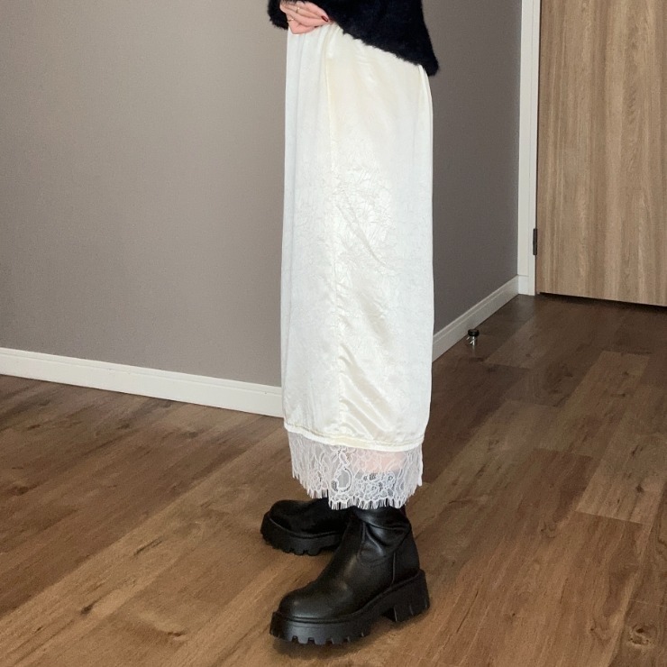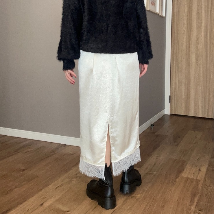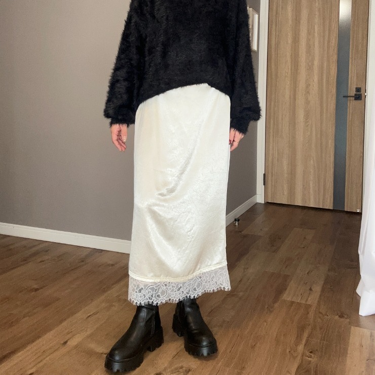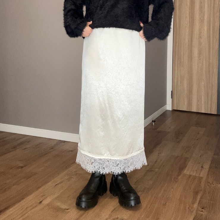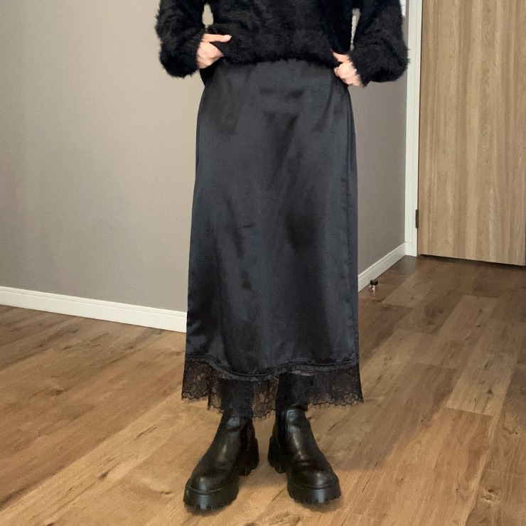 裾のレースが特徴のサテンナロースカート!
