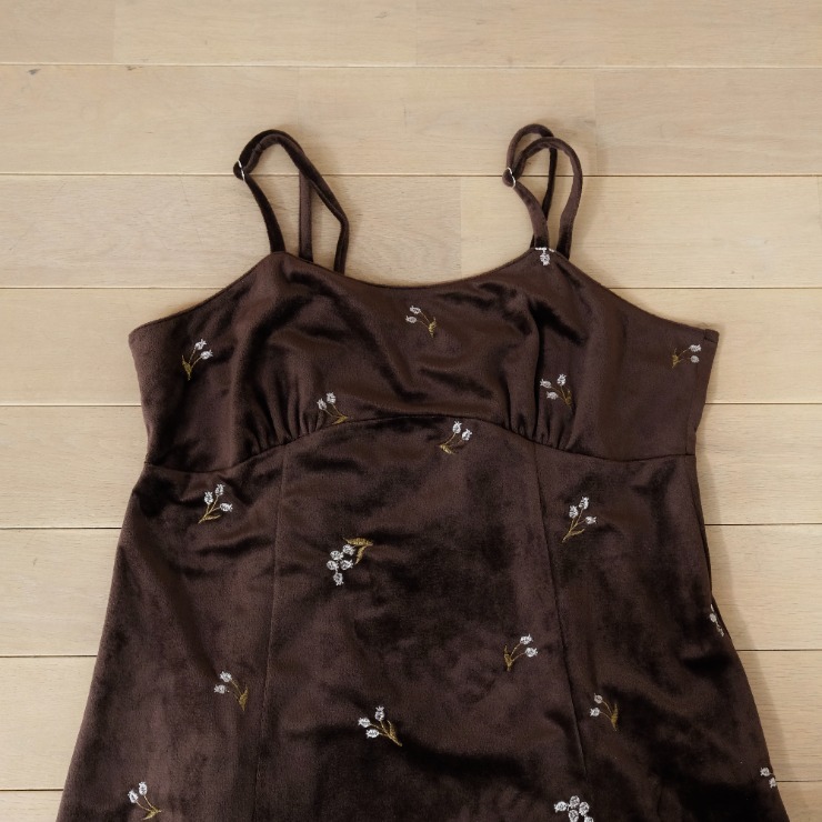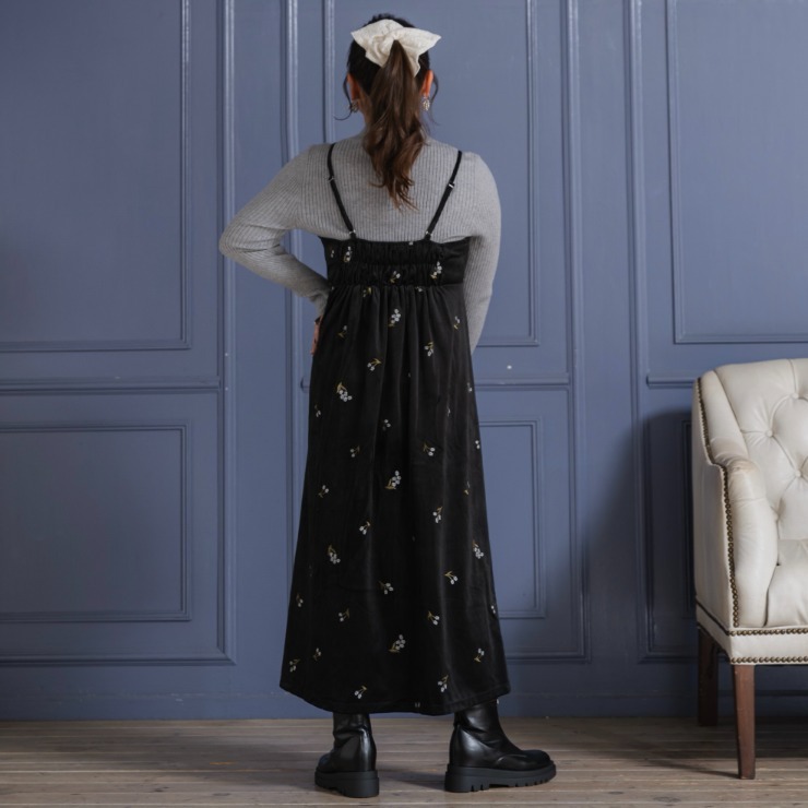 ベロア×花柄刺繍でコーデの主役となれるワンピース。