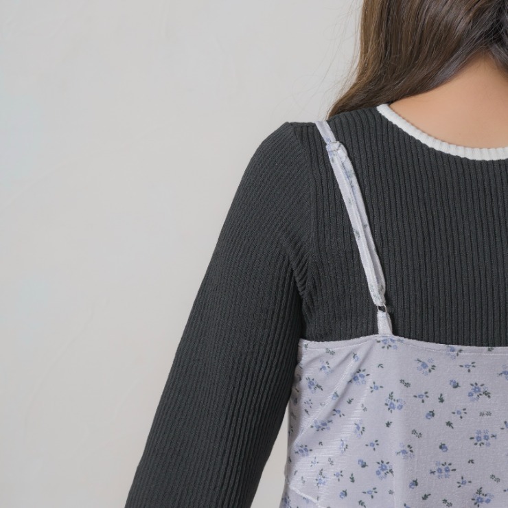 トレンドライクなスタイルが楽しめる花柄ベロア素材のチュニックキャミソール