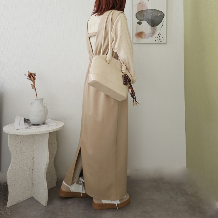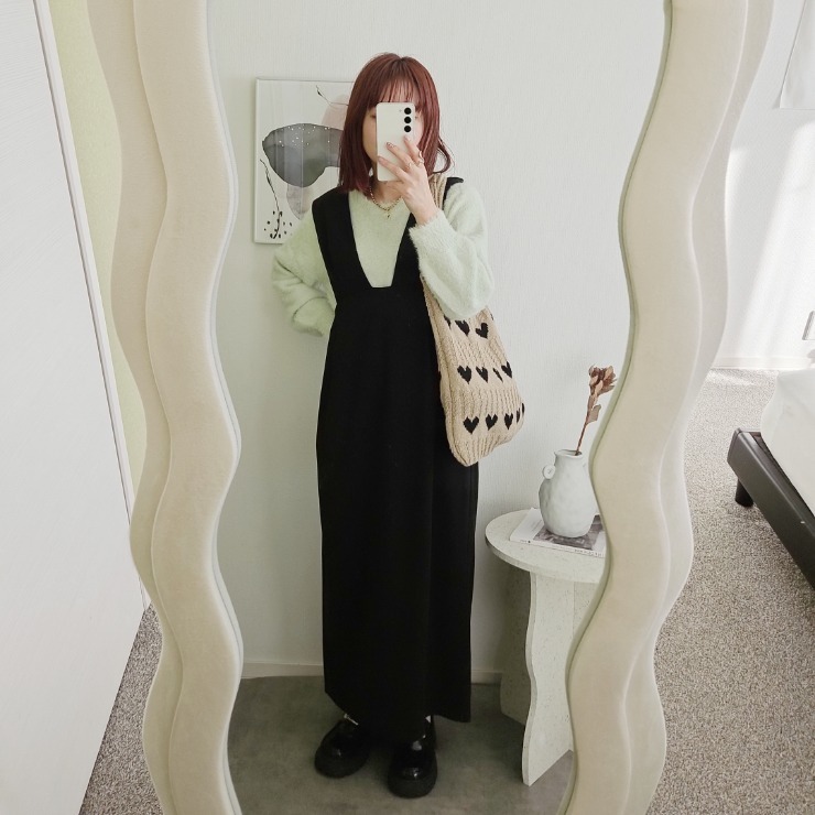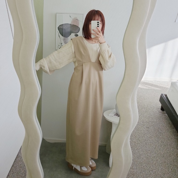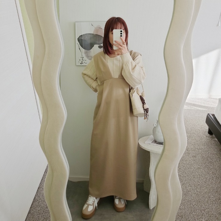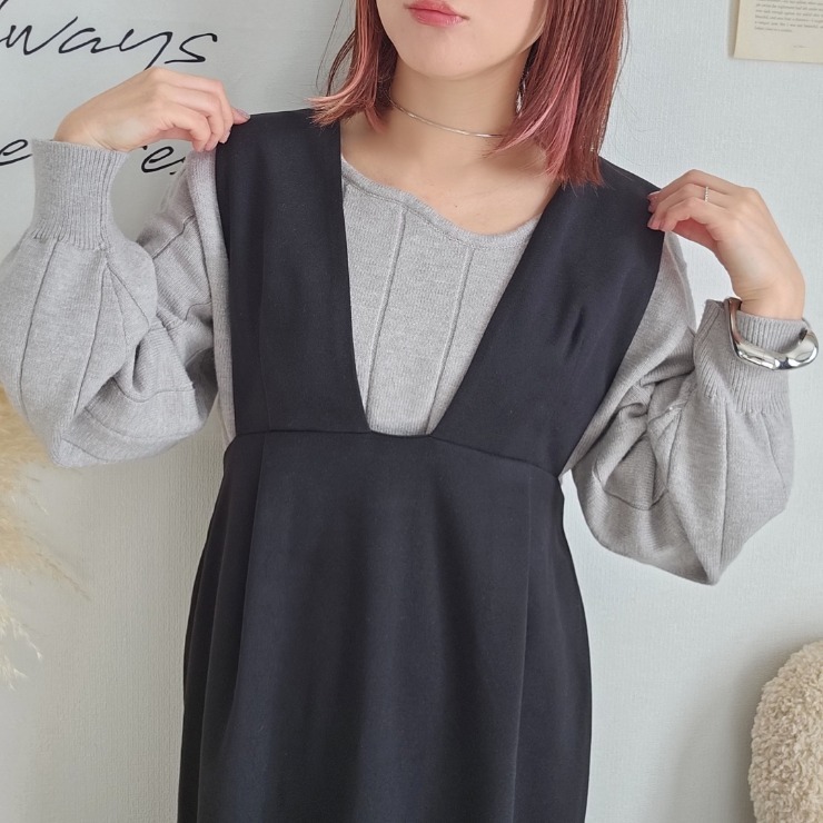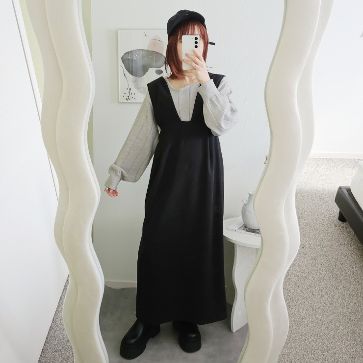 コロンと丸みのあるコクーンシルエットが特徴のジャンスカ。