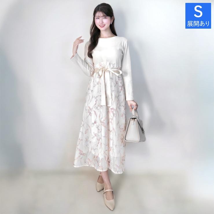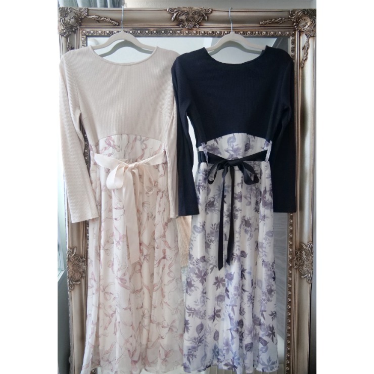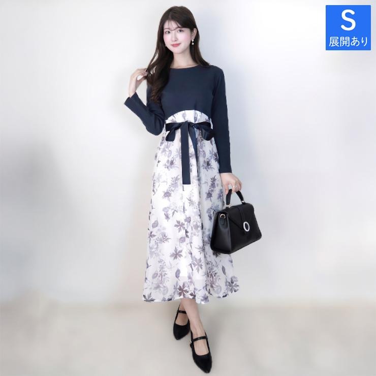 上身頃はすっきり、スカートはふんわりと広がるドッキングワンピース◎