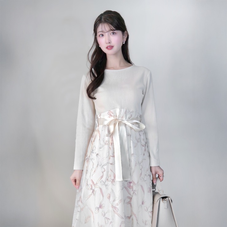 ウエストリボンがスタイルアップを叶え、後ろゴムで着心地も楽ちん♪