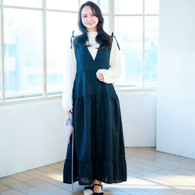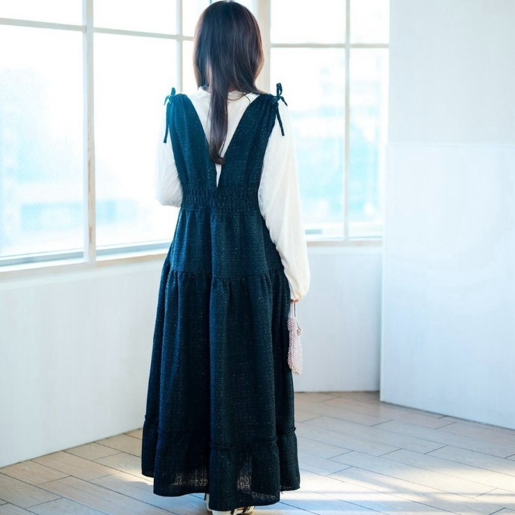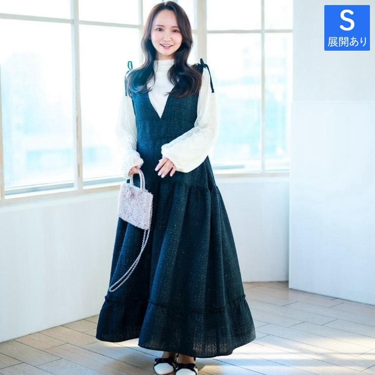レディース ラメツイードティアードジャンパースカート(serimash)