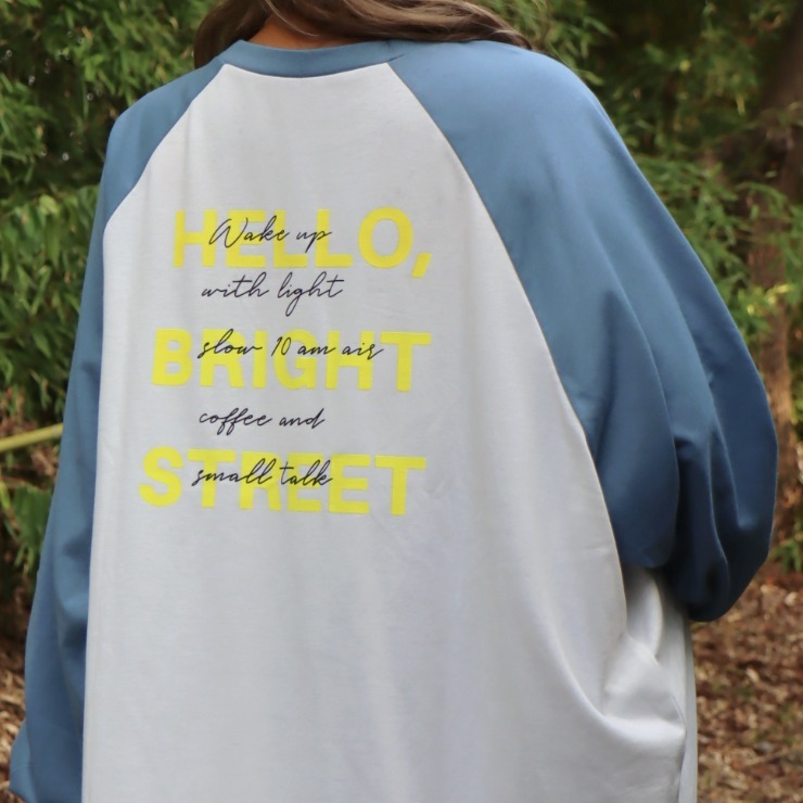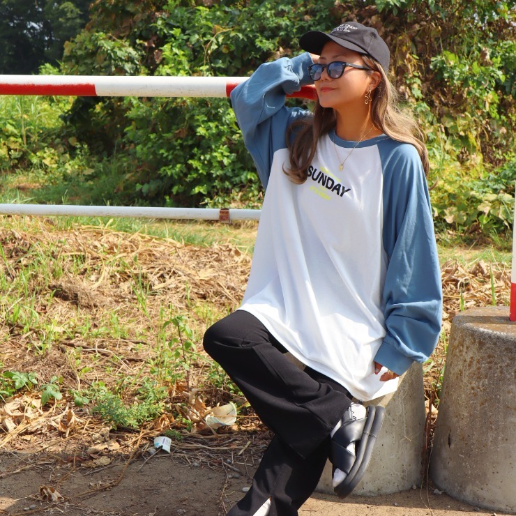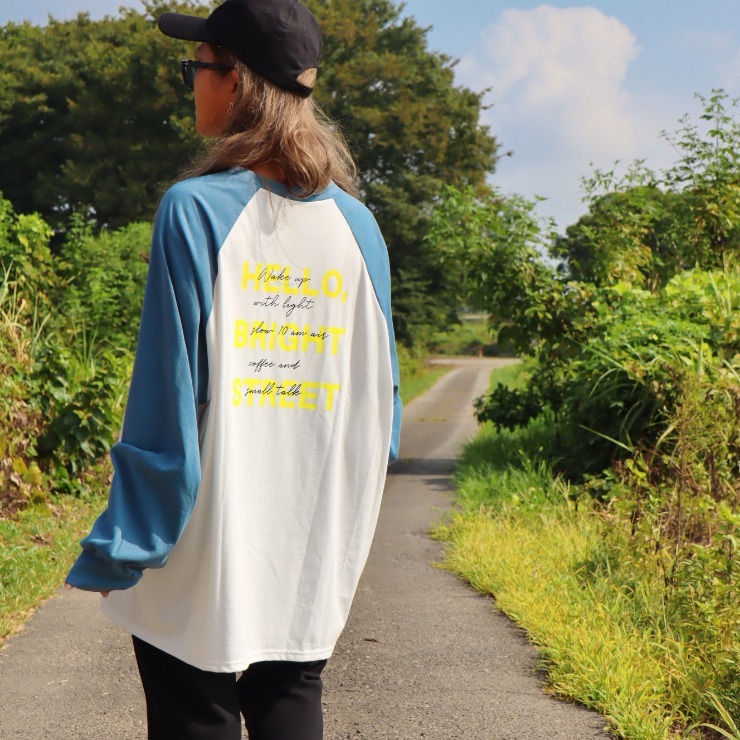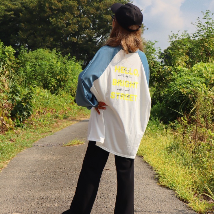フロントはシンプルに、バックは大きめロゴで存在感たっぷりのロンT。