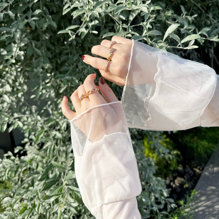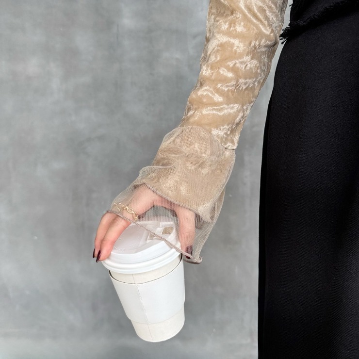 袖口のフレアチュールがふわっと揺れて、手元に視線を集める一癖トップス。