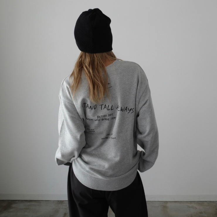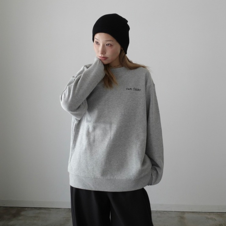 遊び心のある落書き風プリントが目を引く、裏起毛プルオーバー。