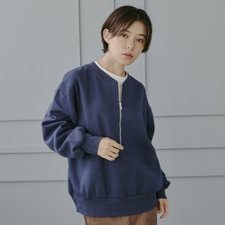 トレンドのハーフジップデザインで、抜け感をプラスした裏起毛プルオーバー。