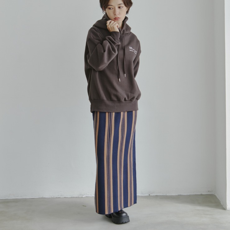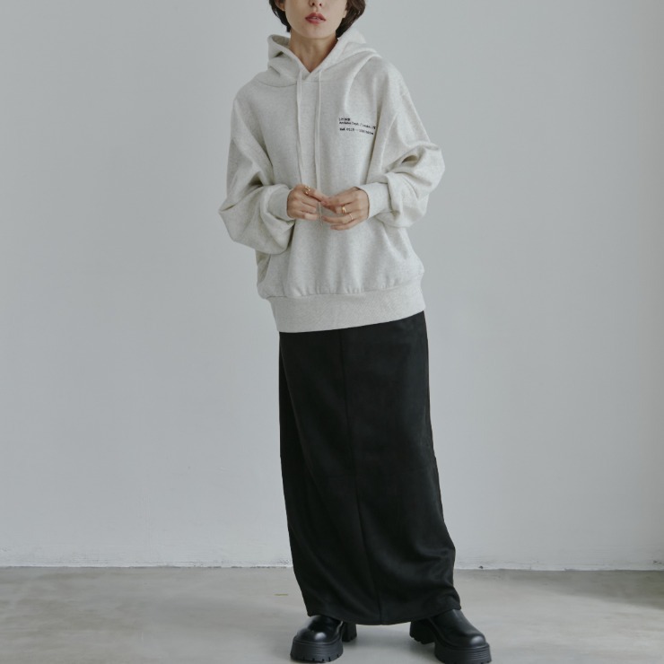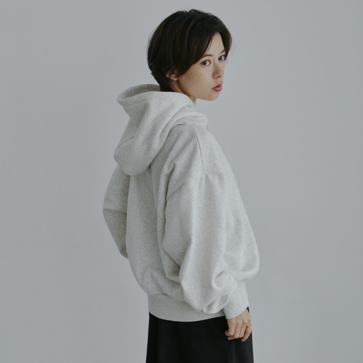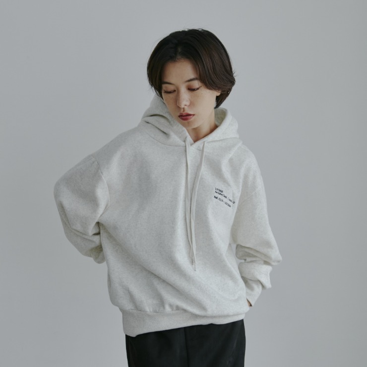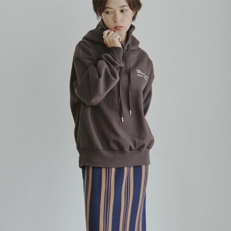 胸元にさりげないロゴ刺繍を施し、シンプルながらトレンド感をプラスしたプルパーカー。