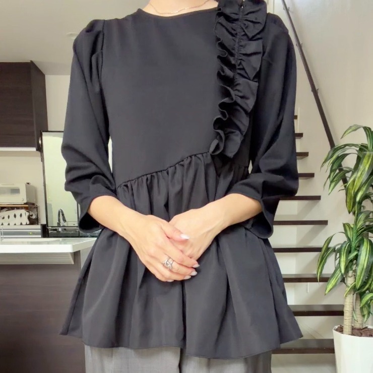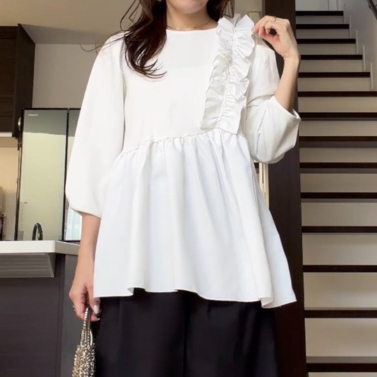 ショートパンツやフレアデニム、スラックスなど様々なボトムスと相性がいいアイテムです。