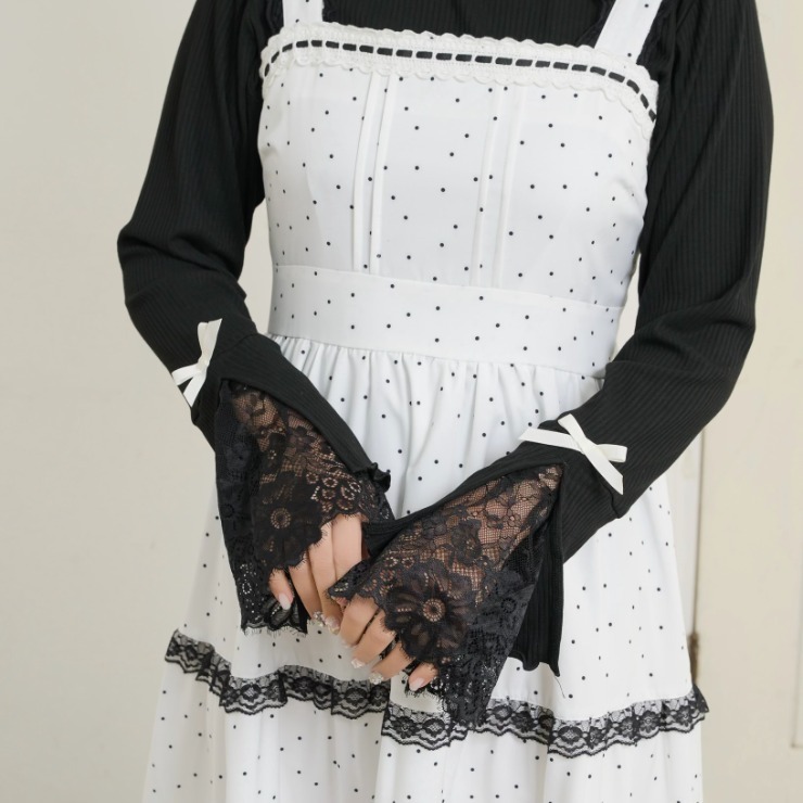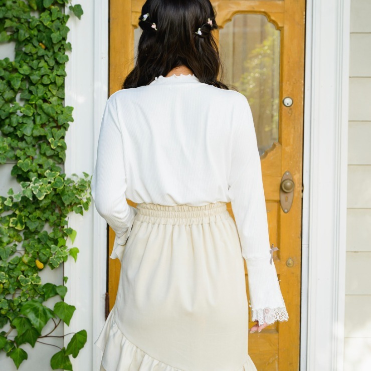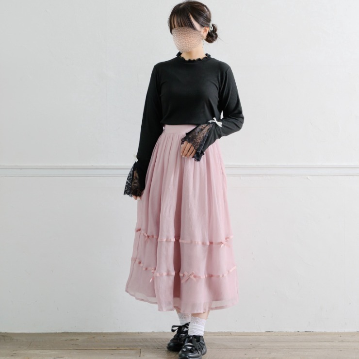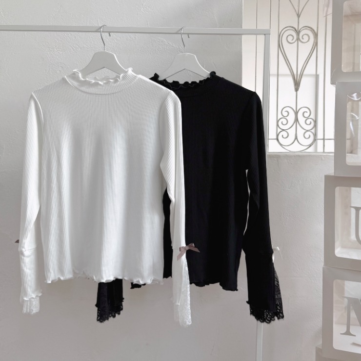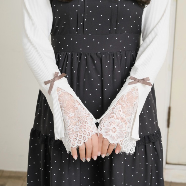 袖部分にはリボンをあしらい、一枚で着ても、上にワンピースやビスチェを重ねてもかわいらしいアイテムです。