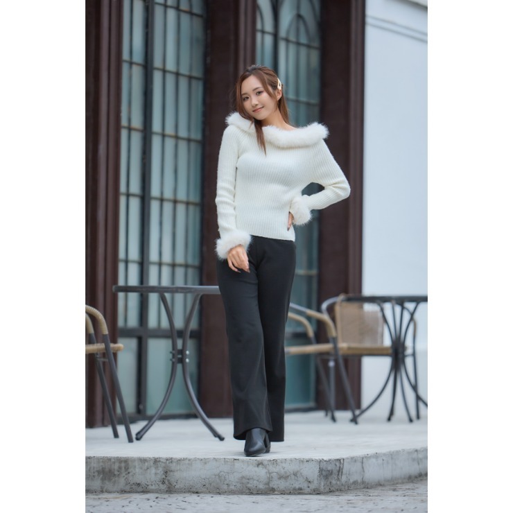 起毛素材であたたかく、伸縮性のあるテレコフレアパンツ。